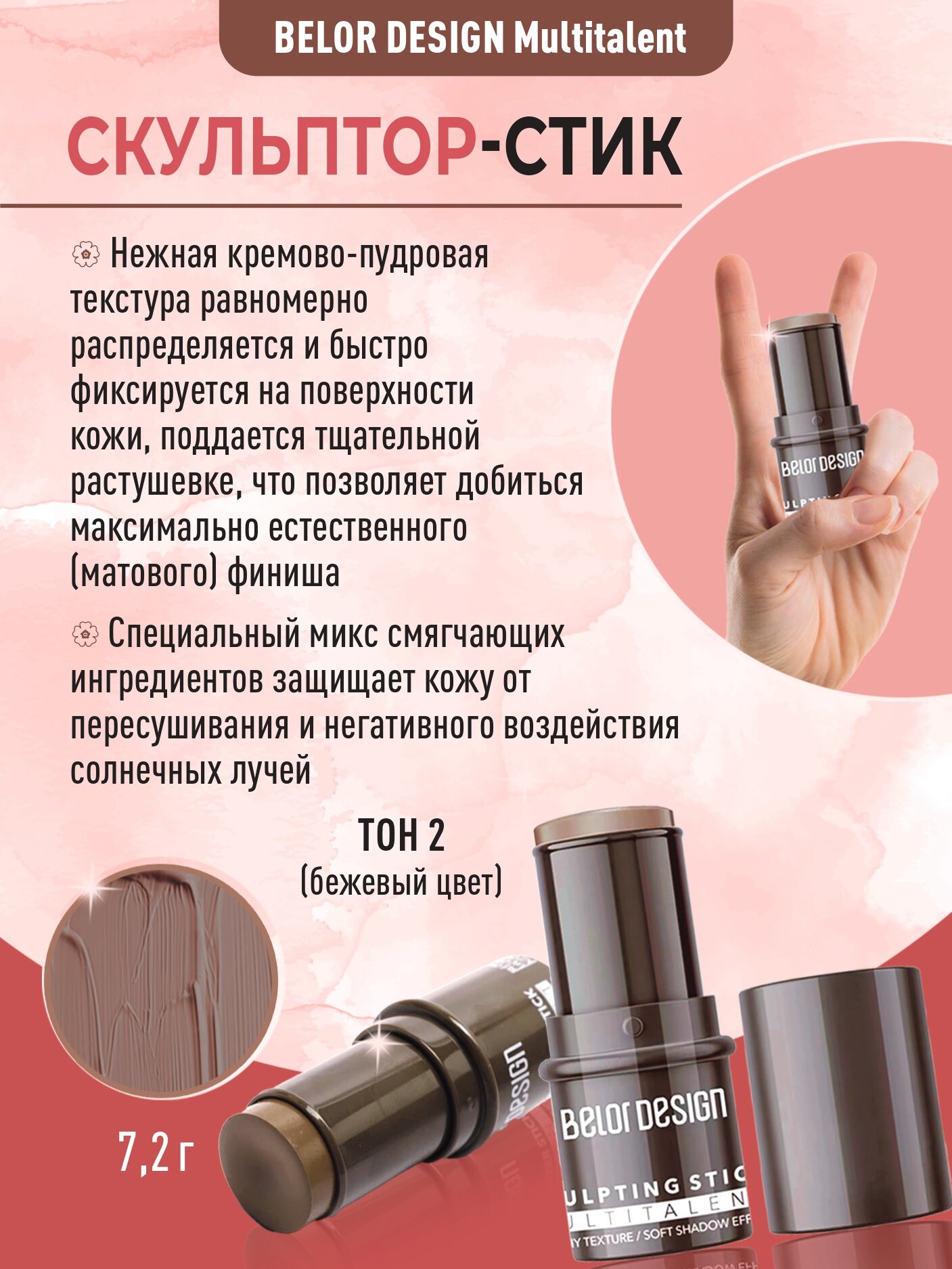Belor Design Скульптор стик для лица Multitalent (мультифункциональный) тон 2 тауп, кремовый, стик интересное: