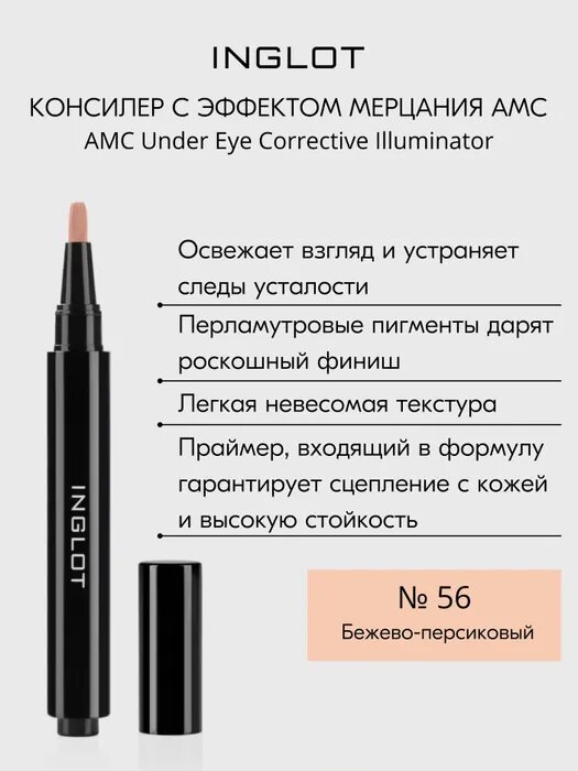 Корректирующий карандаш консилер INGLOT с эффектом мерцания AMC Under Eye Corrective Illuminator №56 интересное: