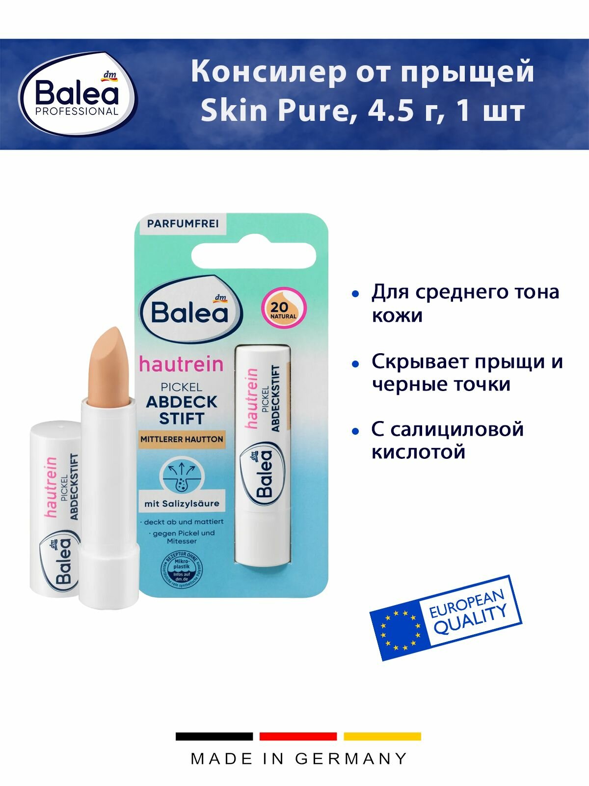 Консилер от прыщей Balea - Skin Pure, цвет темно-бежевый, для среднего тона кожи, 4.5г, 1 шт интересное: