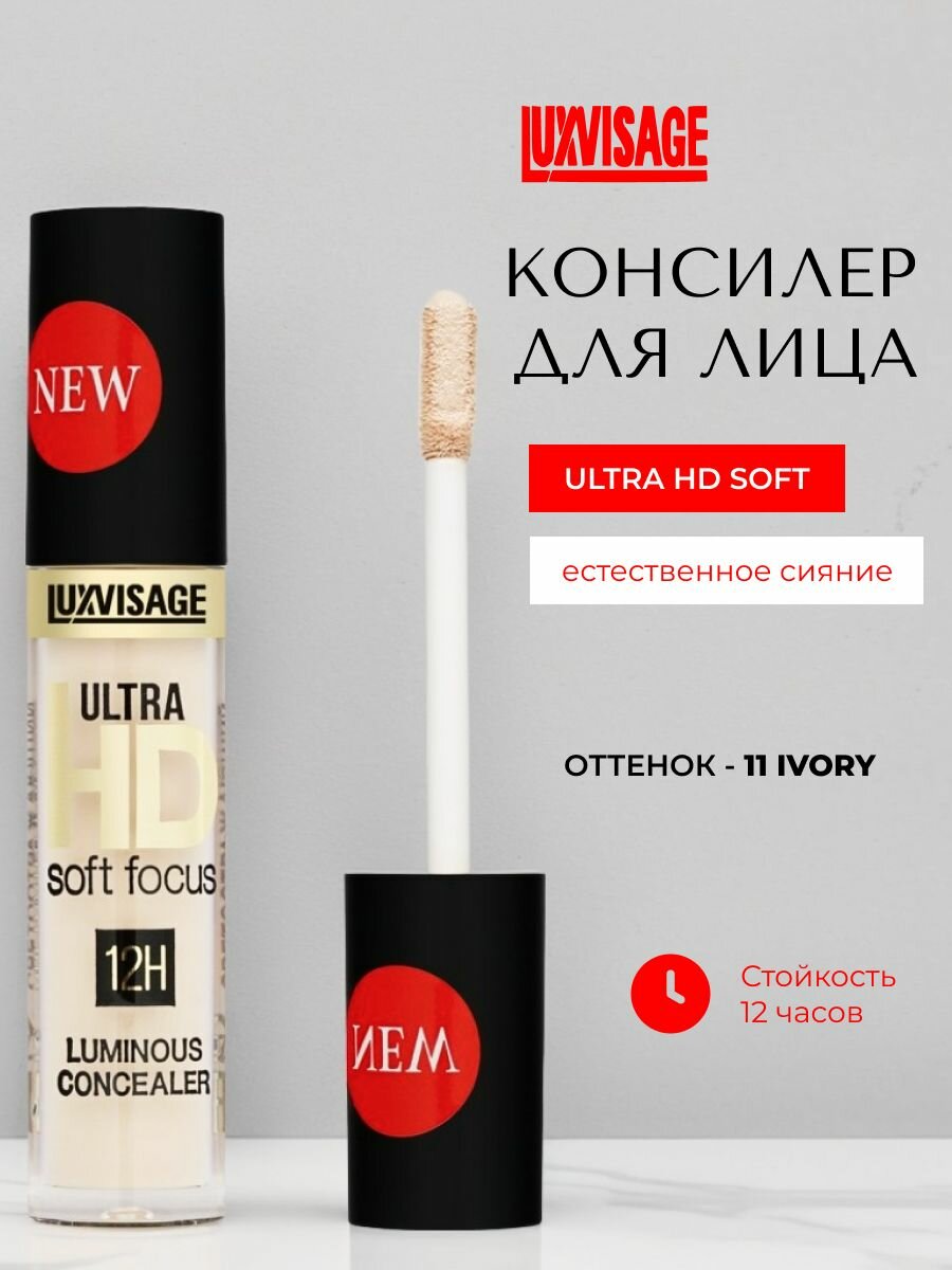 Консилер для лица светоотражающий LUXVISAGE Ultra HD Soft Focus 12H, тон 11 Ivory интересное:
