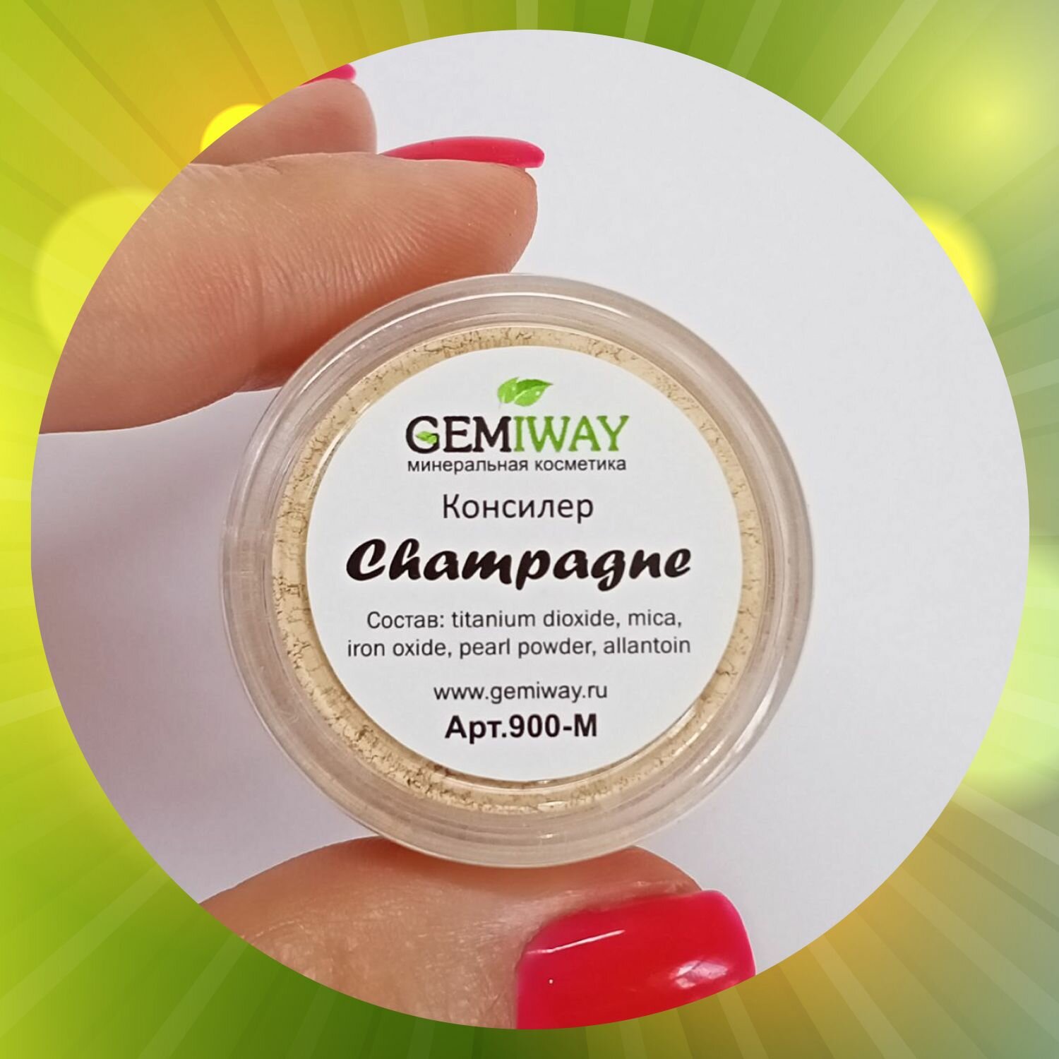 Консилер минеральный "Champagne" GEMIWAY 20мл / 4 г . SPF 50. Рассыпчатый, натуральный консилер