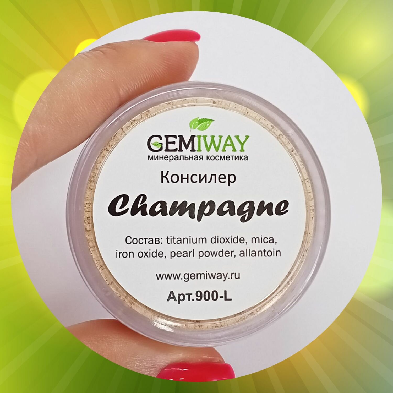 Консилер минеральный "Champagne" GEMIWAY 10мл / 2,25 г . SPF 50. Рассыпчатый, натуральный консилер