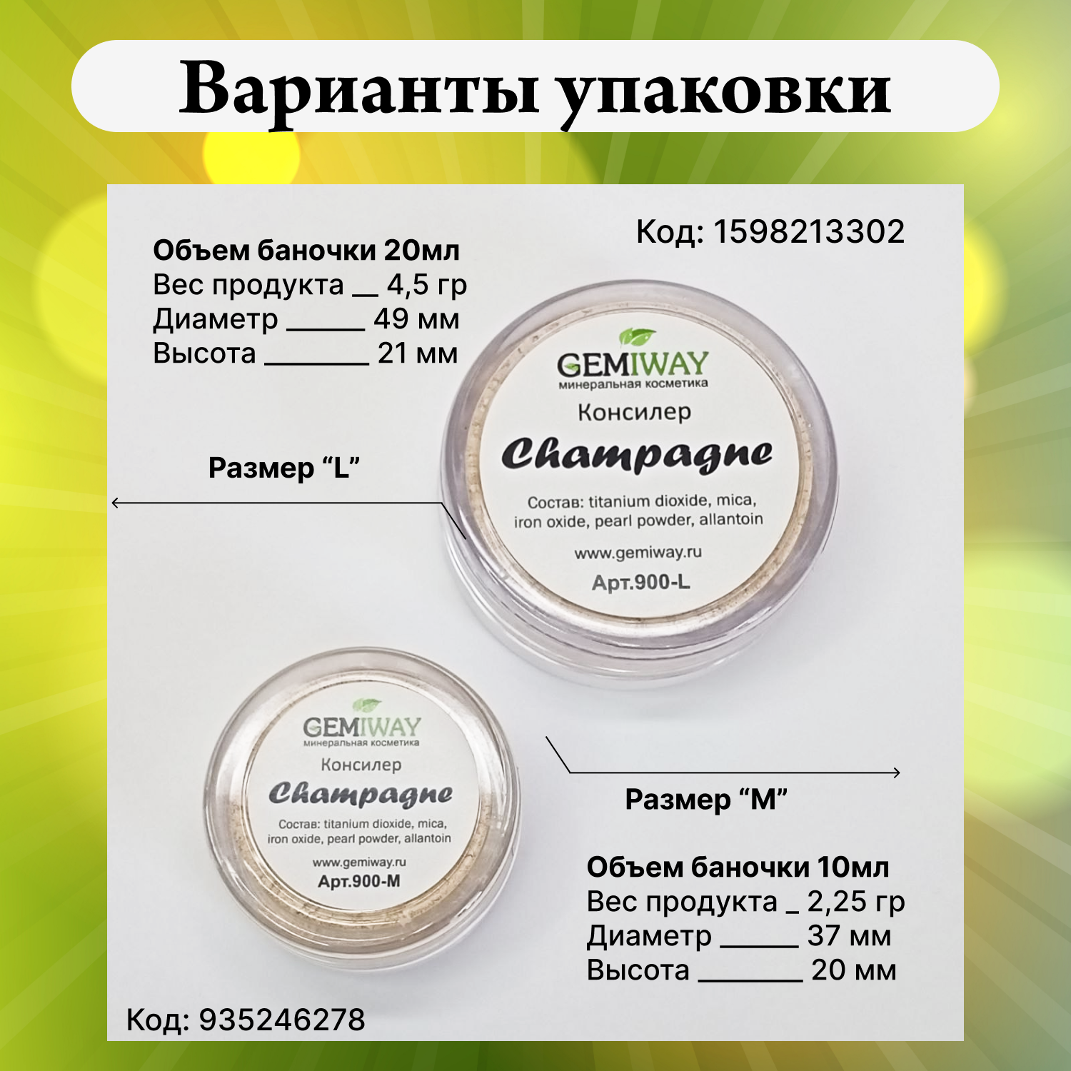 Купить Консилер минеральный "Champagne" GEMIWAY 20мл / 4 г . SPF 50. Рассыпчатый, натуральный консилер