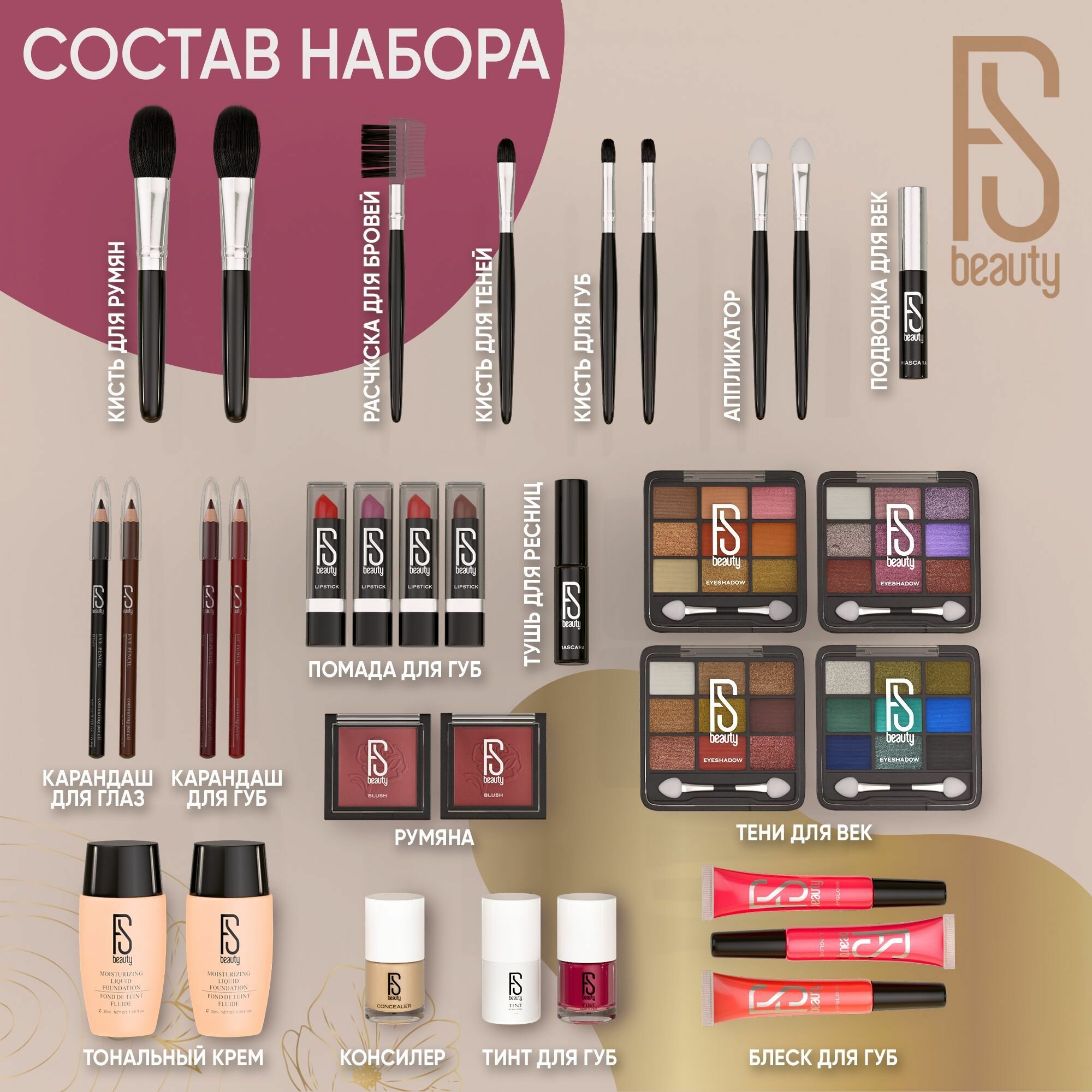 Подарочный набор FS Beauty с декоративной косметикой для макияжа в бьюти бокс Orchid Pink интересное: