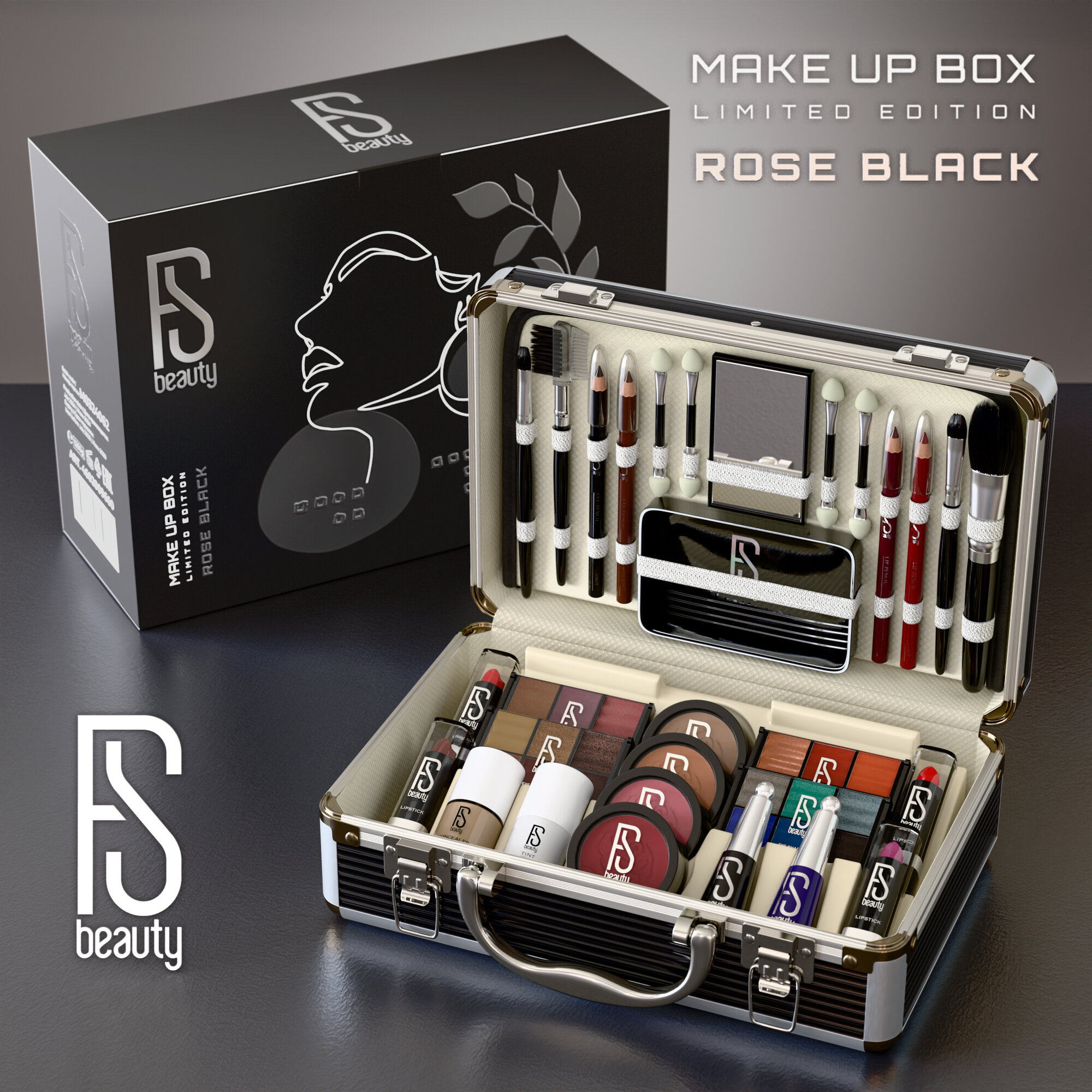 Купить Подарочный набор FS Beauty с декоративной косметикой для макияжа в бьюти бокс Rose Black