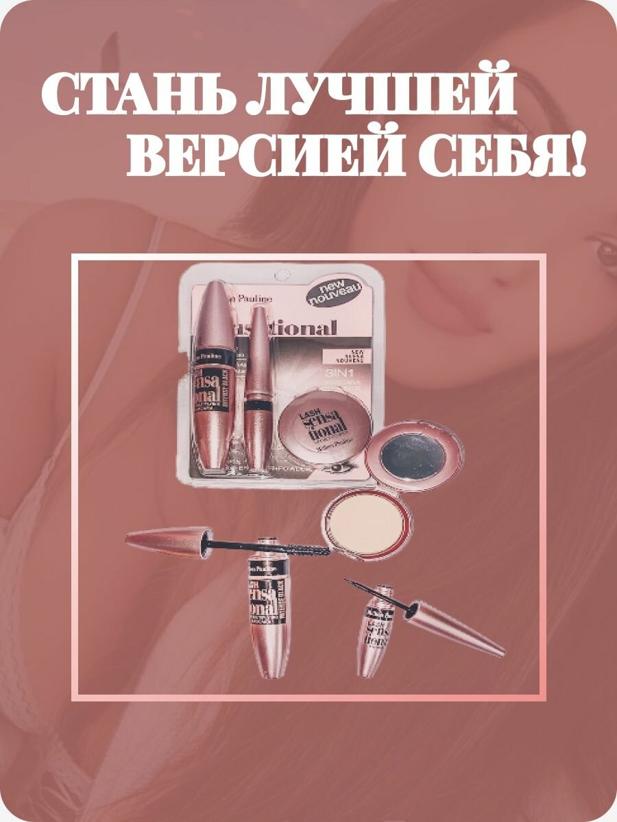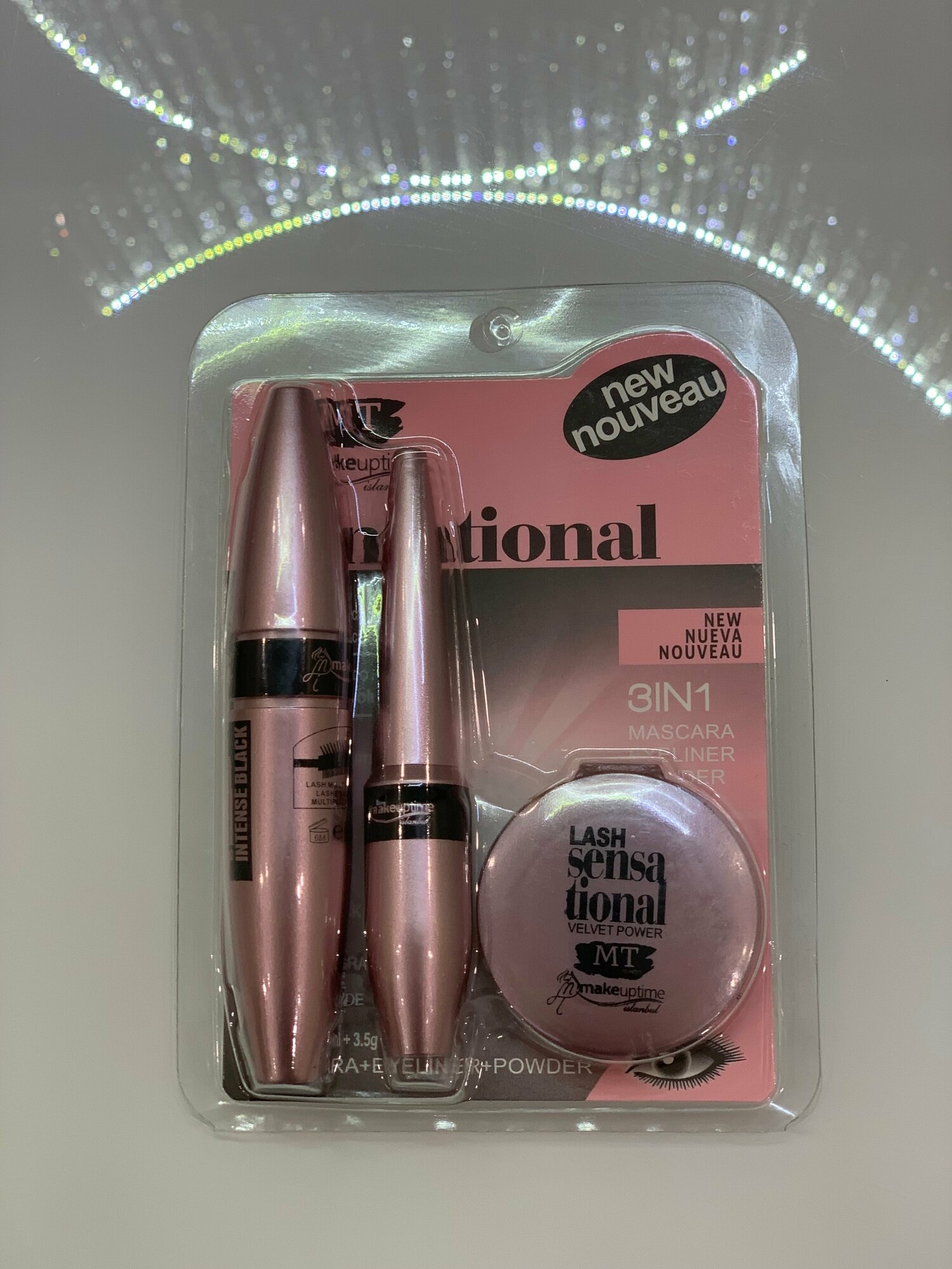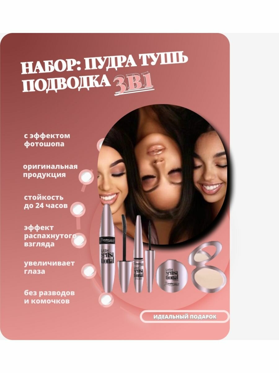 Тушь, подводка, пудра, Набор косметики 3в1 интересное: