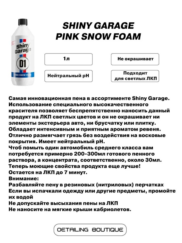 Розовая пена Shiny Garage Pink Snow Foam 1л. / аромат ревень интересное: