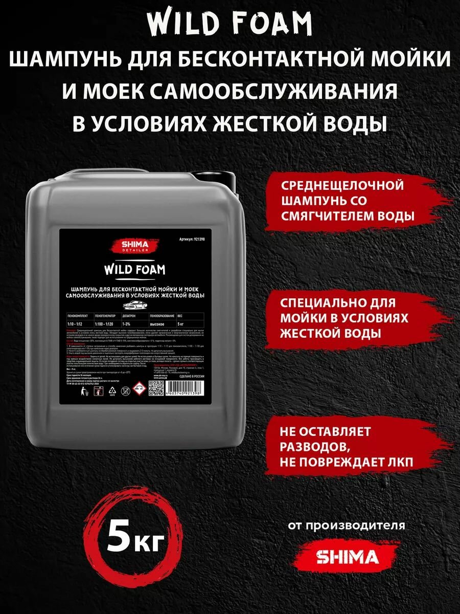 Шампунь для бесконтактной мойки и моек самообслуживания в условиях жесткой воды SHIMA DETAILER WILD FOAM 5 кг интересное: