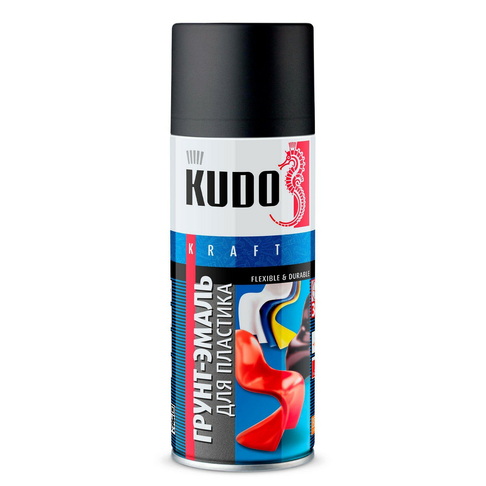 Купить Грунт-эмаль для пластика KUDO, 520 мл, черный, аэрозоль, RAL 9005, ku 6002
