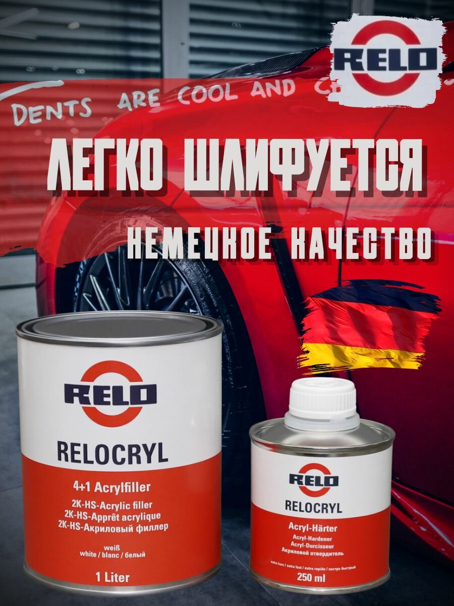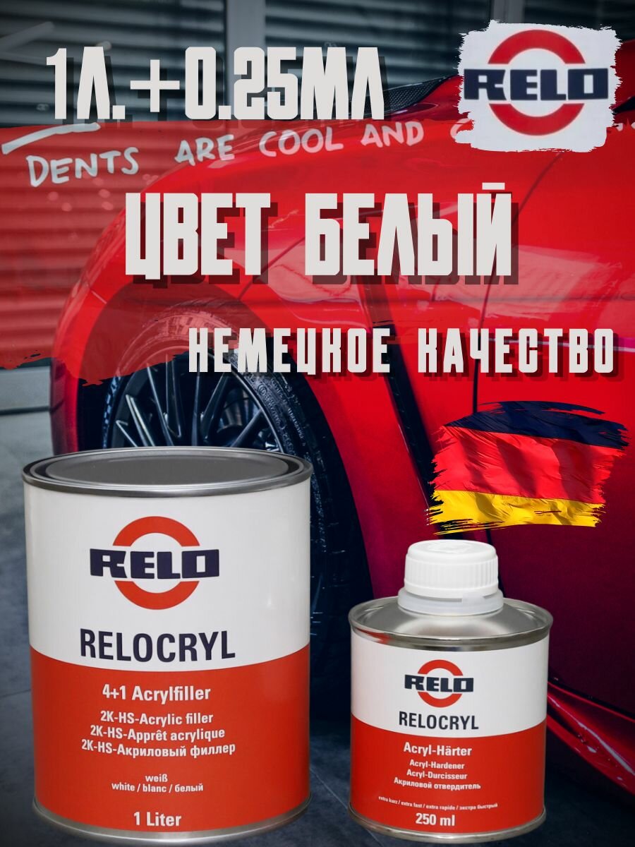 Грунт автомобильный акриловый RELO Relocryl HS 4+1 белый 1л. + 0,25мл. отвердитель (комплект) интересное:
