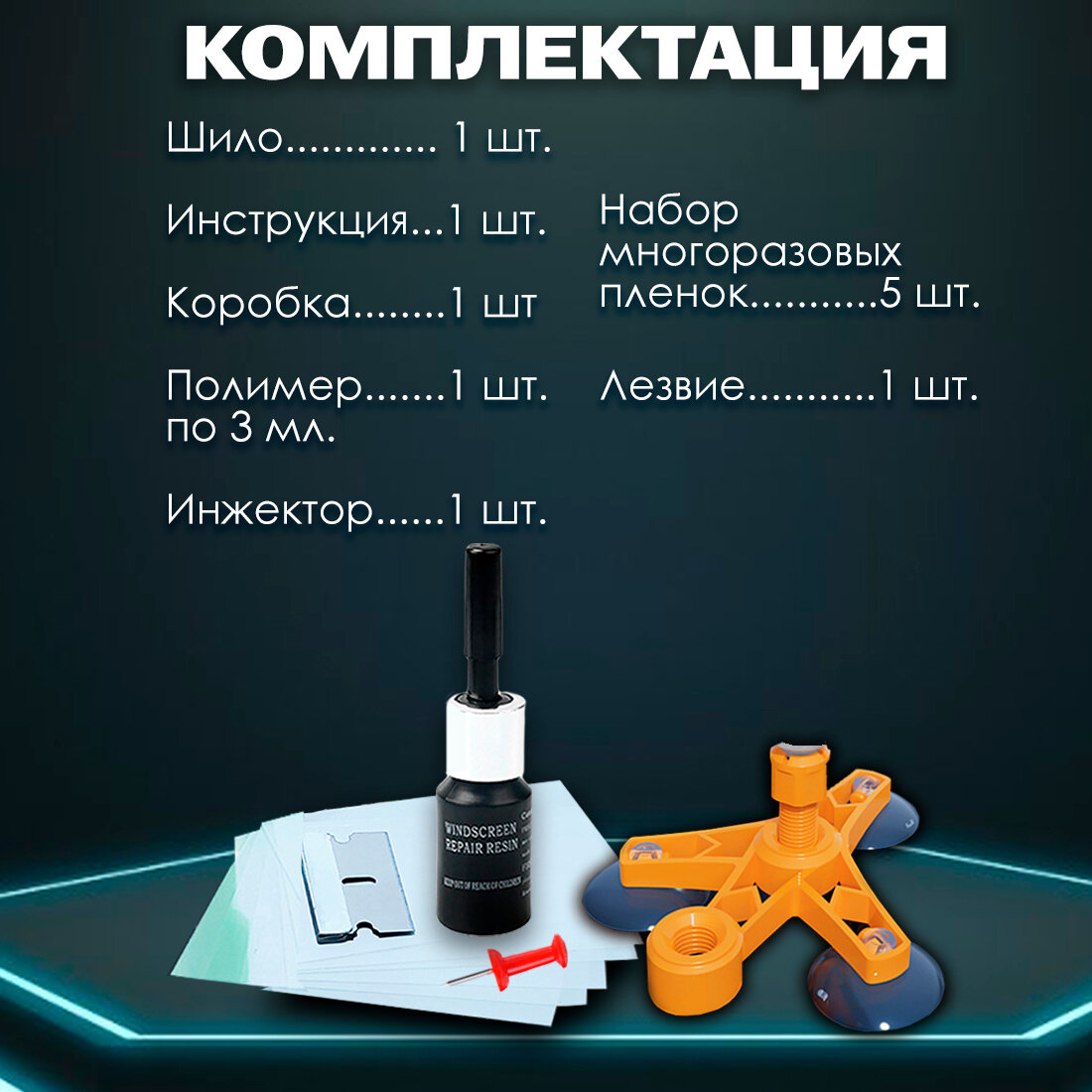 Ремкомплект для лобового стекла, однокомпонентный, клей-герметик, 3 мл, уф фонарик интересное: