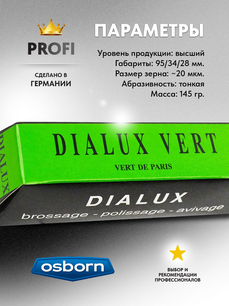 Зеленая полировальная паста Dialux VERT твердая для промежуточной полировки, Osborn интересное: