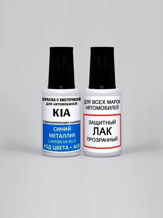 Краска для сколов во флаконе с кисточкой AUB (Z6) KIA Синий металлик, Caribbean Blue 20 мл. , краска+лак 2 предмета интересное: