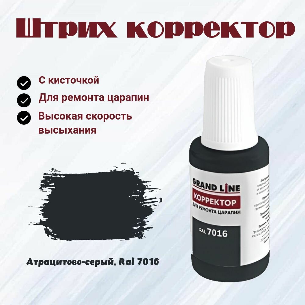 Штрих корректор с кисточкой, Для ремонта царапин, Цвет - Атрацитово-серый, Ral 7016 интересное: