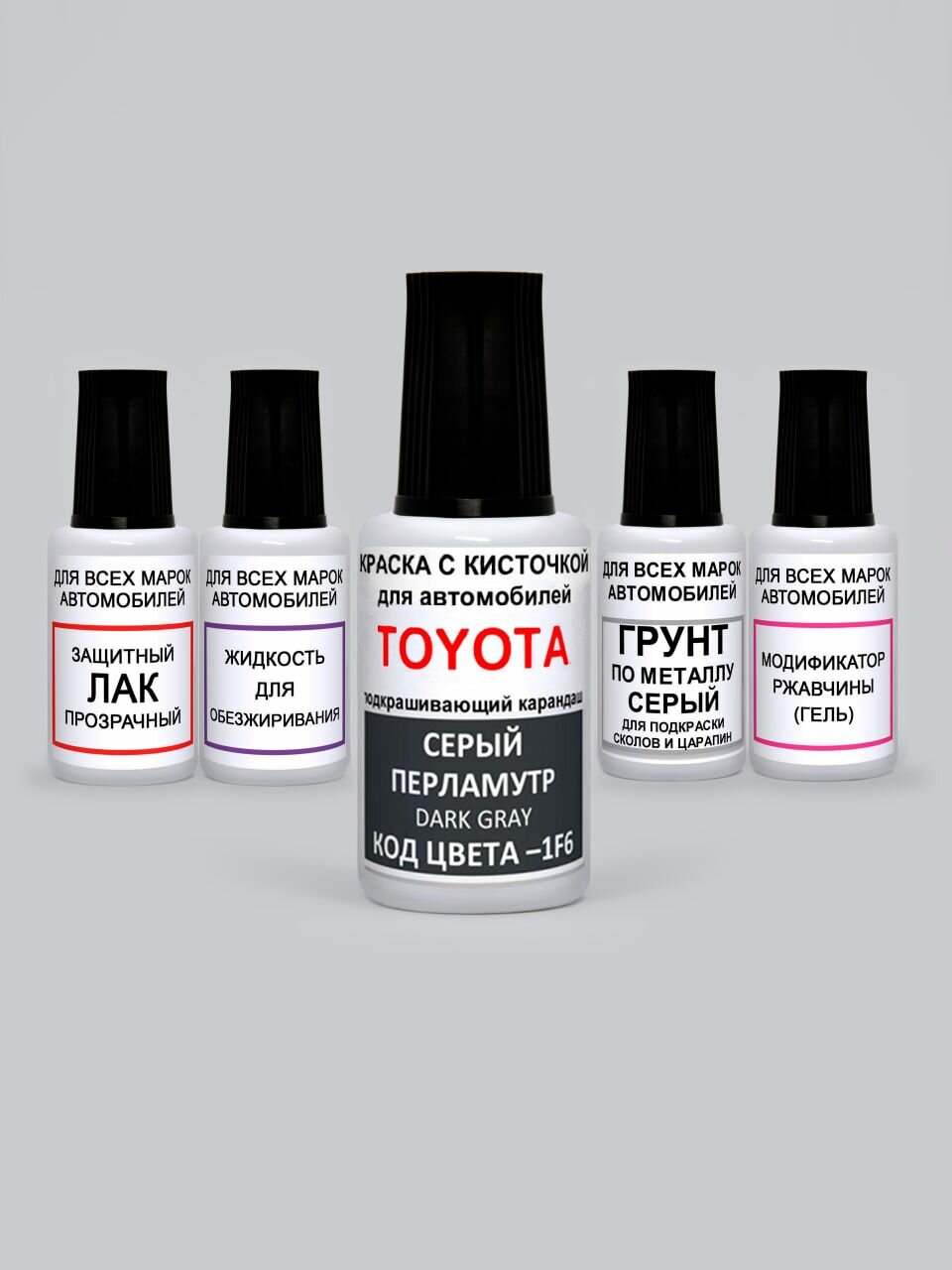 Купить Краска для сколов во флаконе с кисточкой 1F6 Toyota Серый перламутровый металлик, Dark Gray 20 мл. , краска+лак 5 предметов