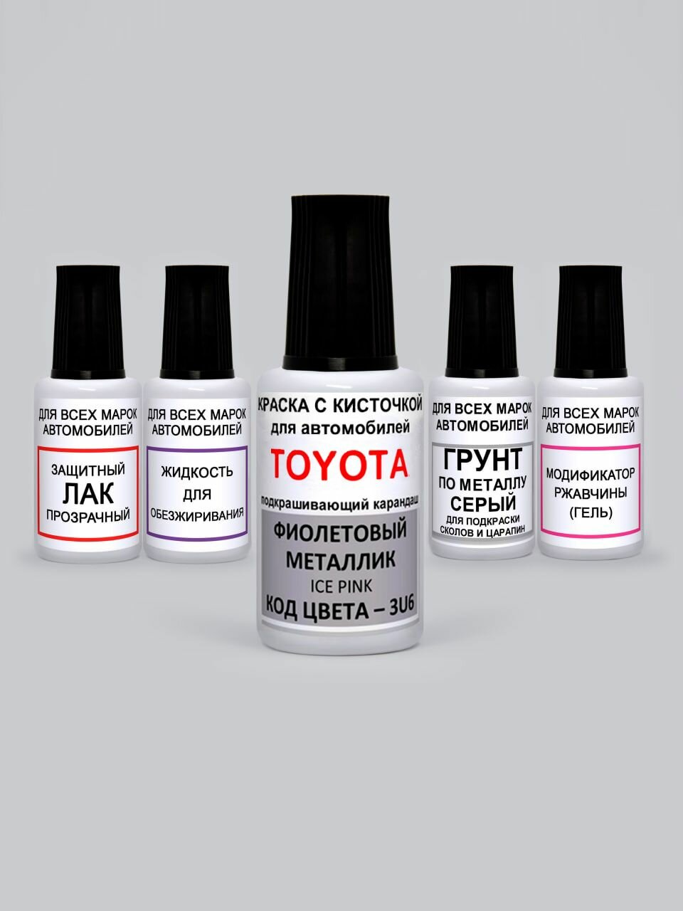 Купить Краска для сколов во флаконе с кисточкой 3U6 Toyota Фиолетовый металлик, Ice Pink 20 мл. , краска+лак 5 предметов