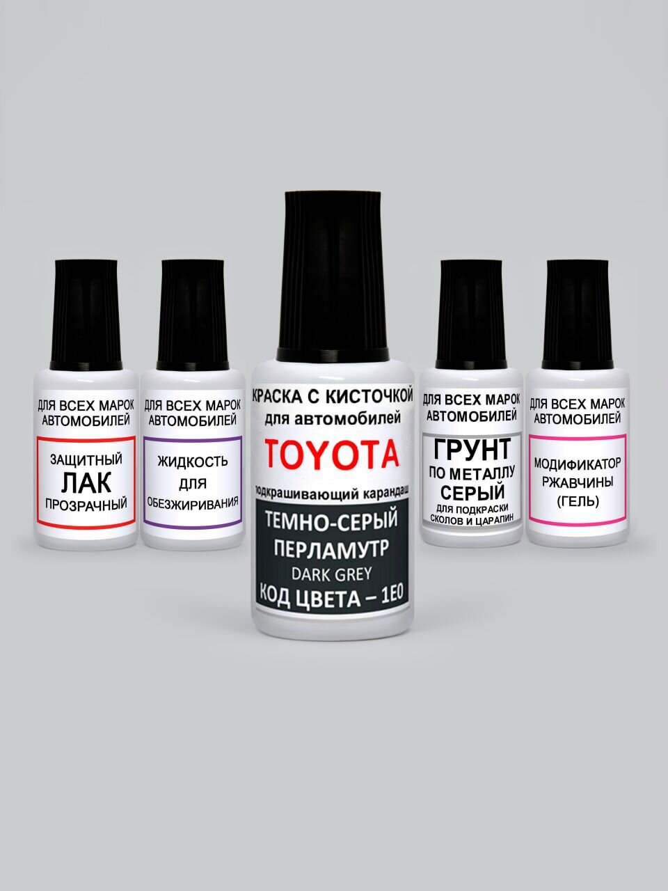 Купить Краска для сколов во флаконе с кисточкой 1E0 Toyota Темно-серый перламутровый металлик, Dark Grey 20 мл. , краска+лак 5 предметов