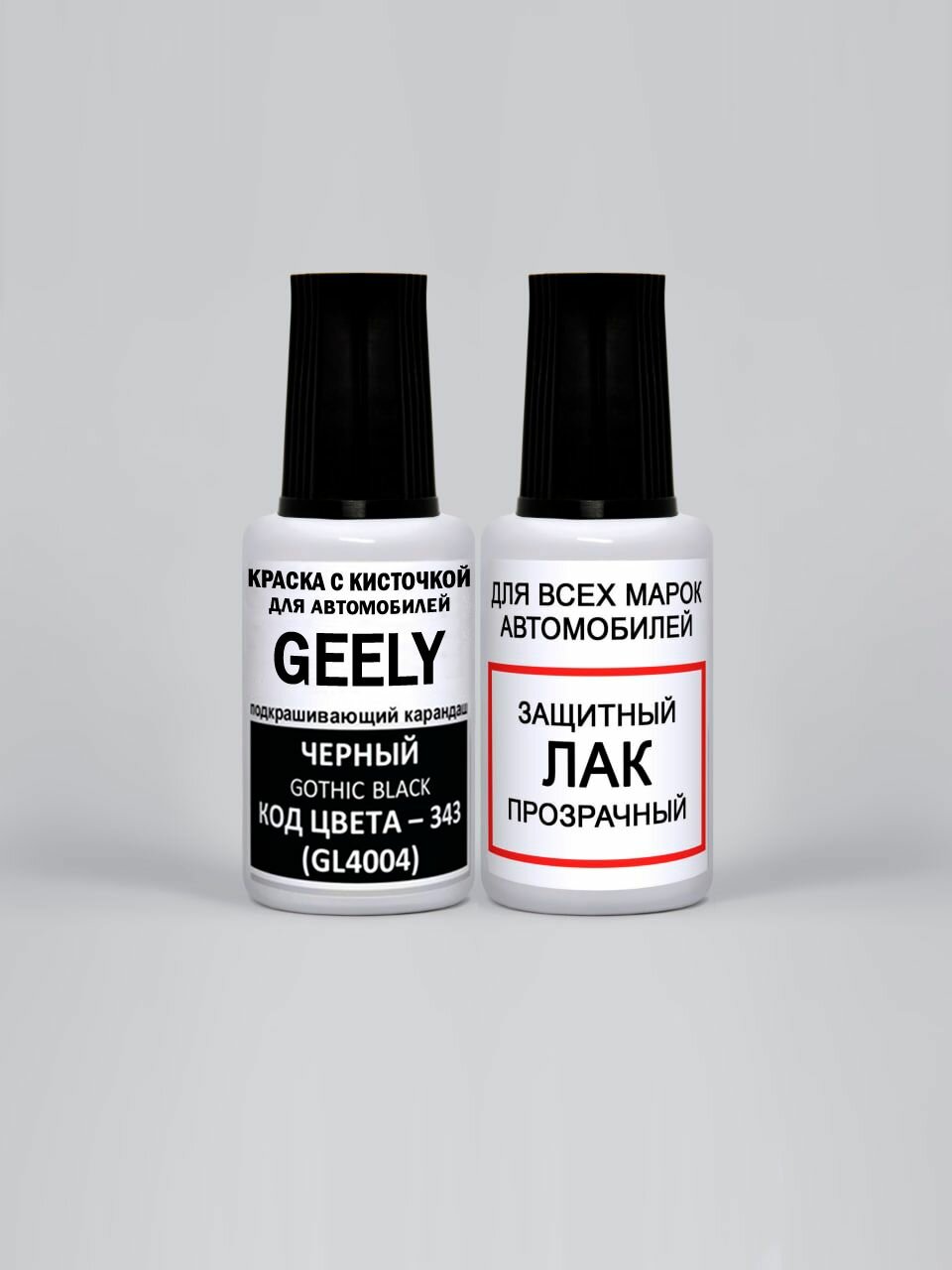 Купить Краска для сколов во флаконе с кисточкой 343 Geely Черный, базовый, Gothic Black 20 мл. , краска+лак 2 предмета