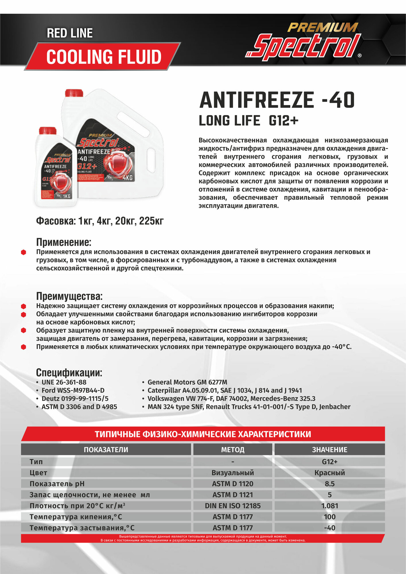 Антифриз Spectrol Premium -40 красный G12+ интересное:
