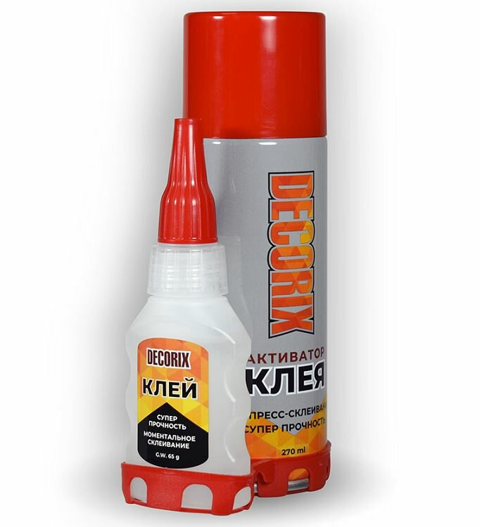 Клей двухкомпонентный экспресс-склеивание (аэрозольный активатор 270мл + клей 65гр) "DECORIX" интересное: