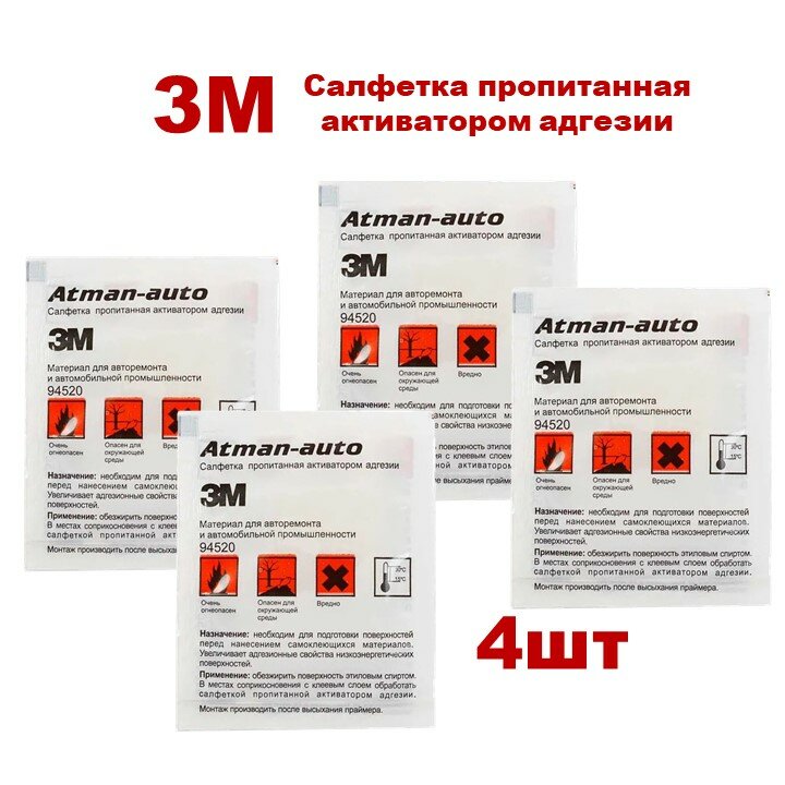 3M Салфетка с активатором адгезии 94520 для кузова автомобиля, 4шт интересное: