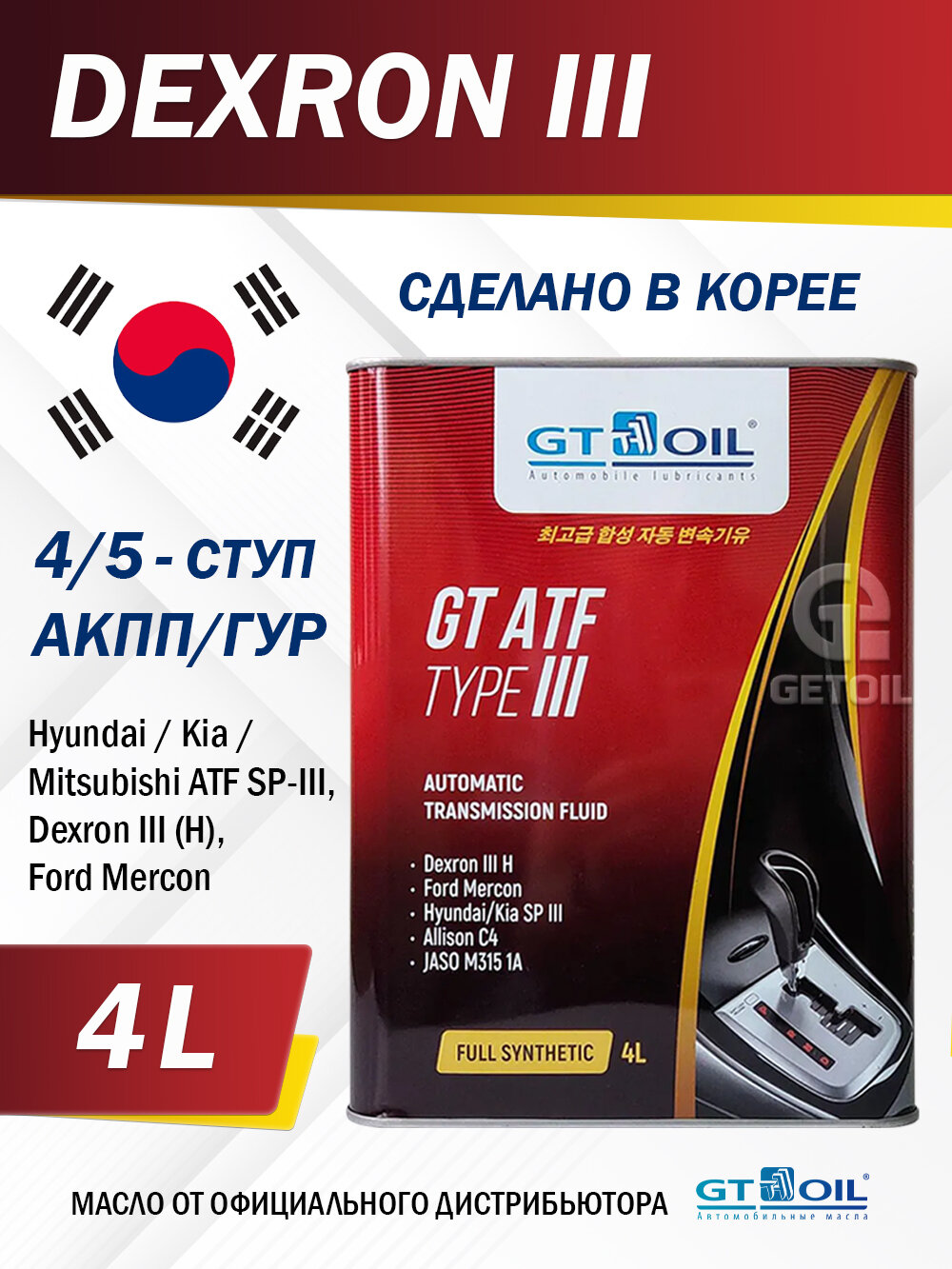 Масло трансмиссионное для АКПП, ГУР GT ATF TYPE III, синтетическое, 4 л интересное: