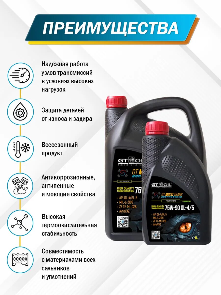 Ниже Вы можете прочитать отзывы на Масло трансмиссионное GT Oil Multi Trans 75W-90, GL-4/GL-5, синтетическое, 1л, ознакомится с подробными характеристиками, посмотреть интересные обзоры и фотографии на Масло трансмиссионное GT Oil Multi Trans 75W-90, GL-4/GL-5, синтетическое, 1л.
