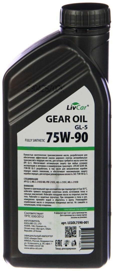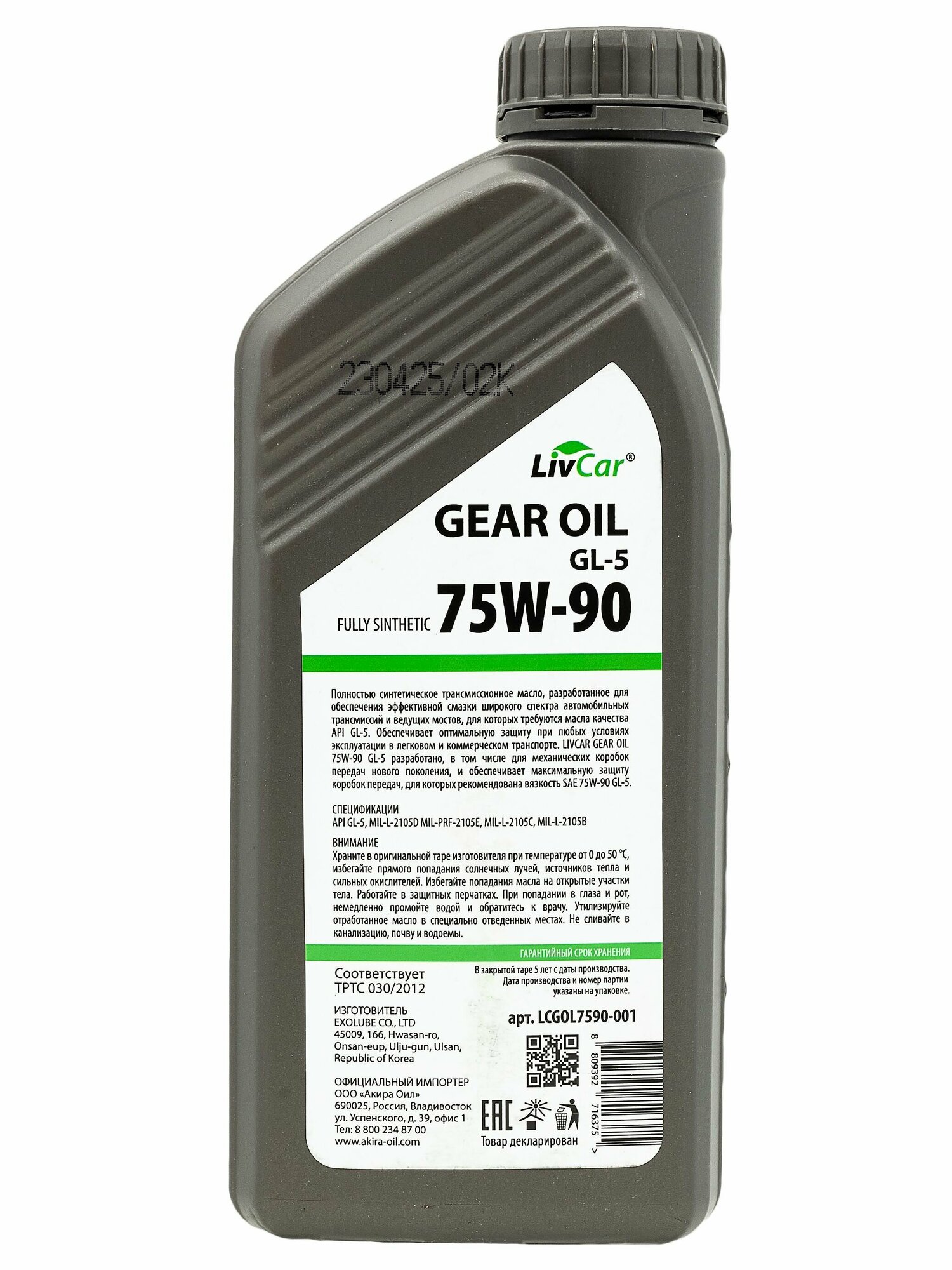 Масло трансмиссионное LivCar Gear Oil GL-5 75W-90 (1л) интересное: