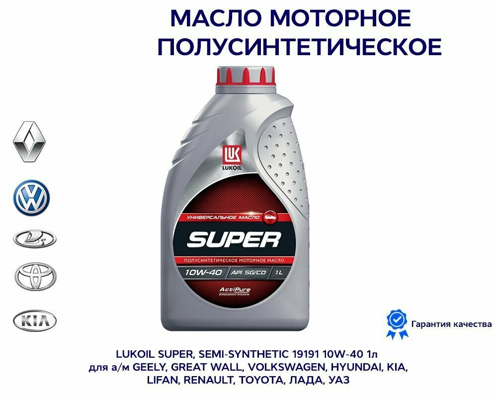 Ниже Вы можете прочитать отзывы на Полусинтетическое моторное масло ЛУКОЙЛ Супер SG/CD 10W-40, 1 л, ознакомится с подробными характеристиками, посмотреть интересные обзоры и фотографии на Полусинтетическое моторное масло ЛУКОЙЛ Супер SG/CD 10W-40, 1 л.