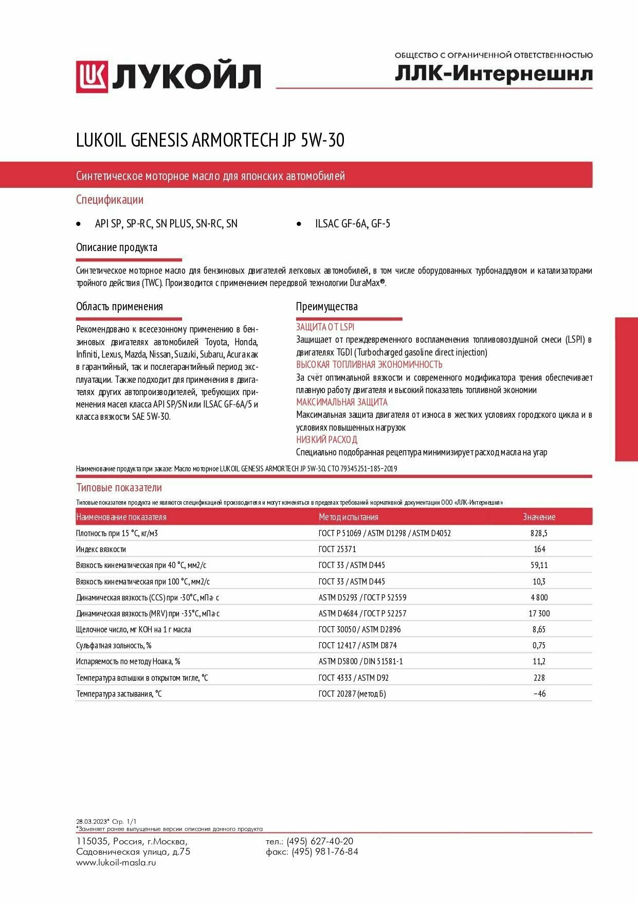 HC-синтетическое моторное масло ЛУКОЙЛ Genesis Armortech JP 5W-30, 4 л интересное: