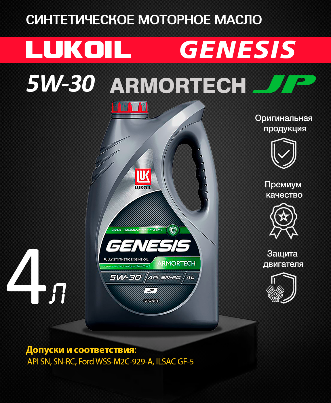 Купить HC-синтетическое моторное масло ЛУКОЙЛ Genesis Armortech JP 5W-30, 4 л