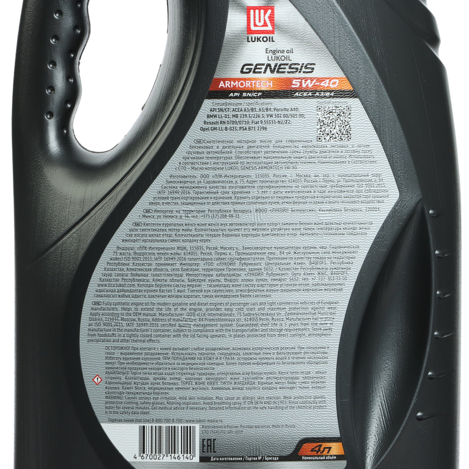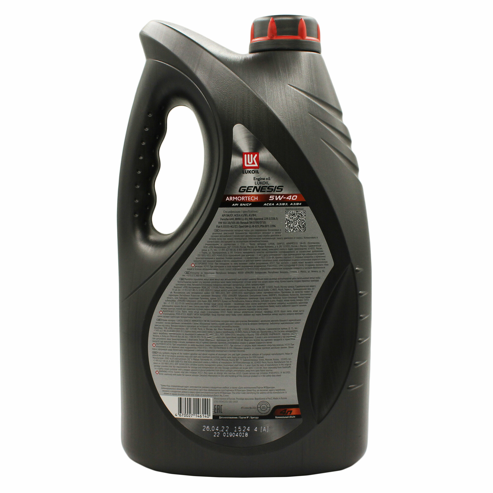 Купить Моторное масло Лукойл Genesis Armortech for European Cars 5W-40 4л