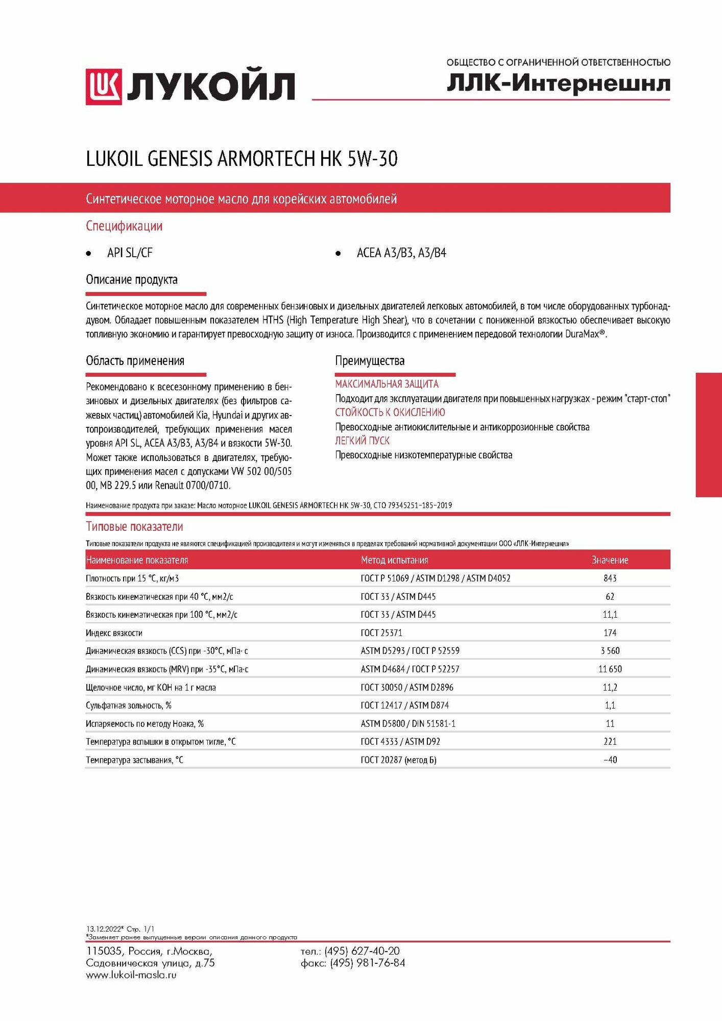 Масло моторное синтетическое, 5W30, Лукойл, Genesis Armortech НК, 4 л, 3149287 интересное: