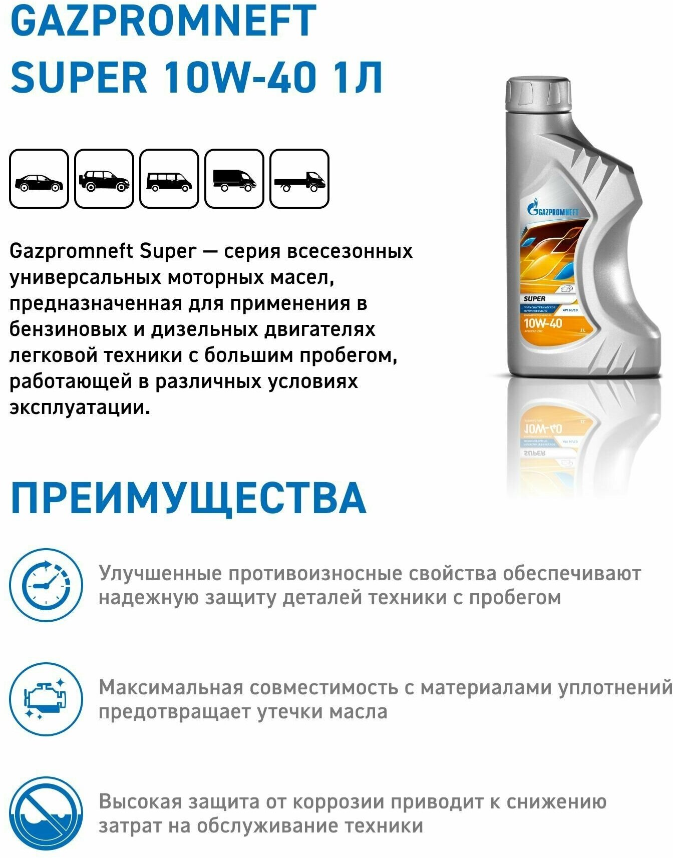 Минеральное моторное масло Газпромнефть Super 10W-40 API SG/CD 1 л интересное:
