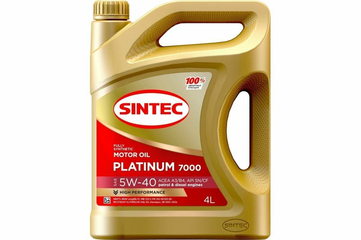 Купить Масло моторное синтетическое SINTEC Platinum 7000 5W40 4 л для а/м BMW, MERCEDES-BENZ, VOLKSWAGEN (600139)