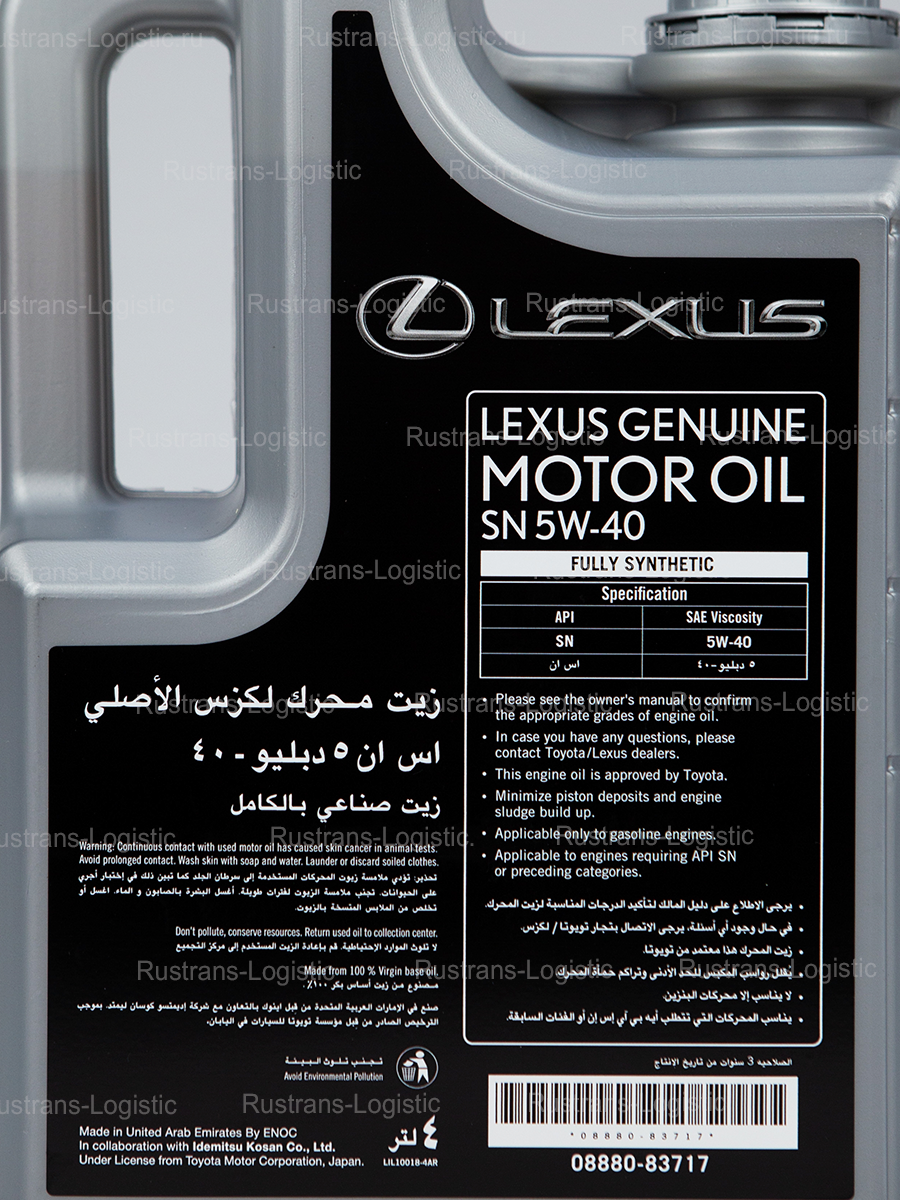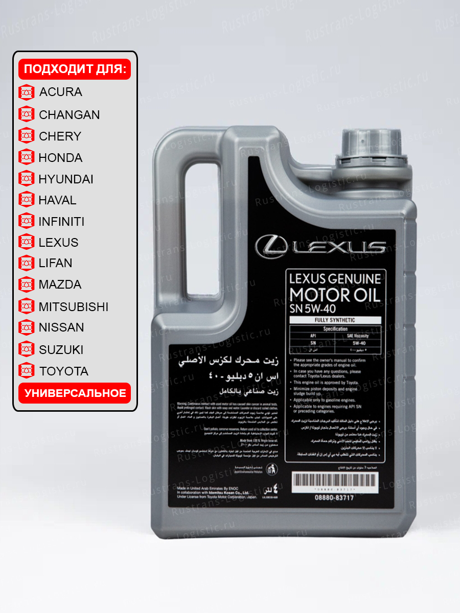 Купить Моторное масло Lexus SN 5W-40 (Дубай), (4л) + бирка, масло моторное 5w40 синтетическое для автомобиля Лексус/Тойота 5w40 08880-83717, РТЛ