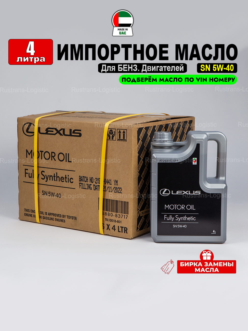 СохранитьМоторное масло Lexus SN 5W-40 (Дубай), (4л) + бирка, масло моторное 5w40 синтетическое для автомобиля Лексус/Тойота 5w40 08880-83717, РТЛ интересное: