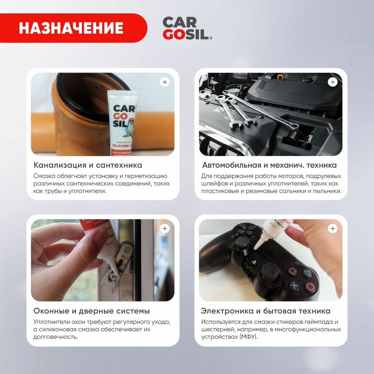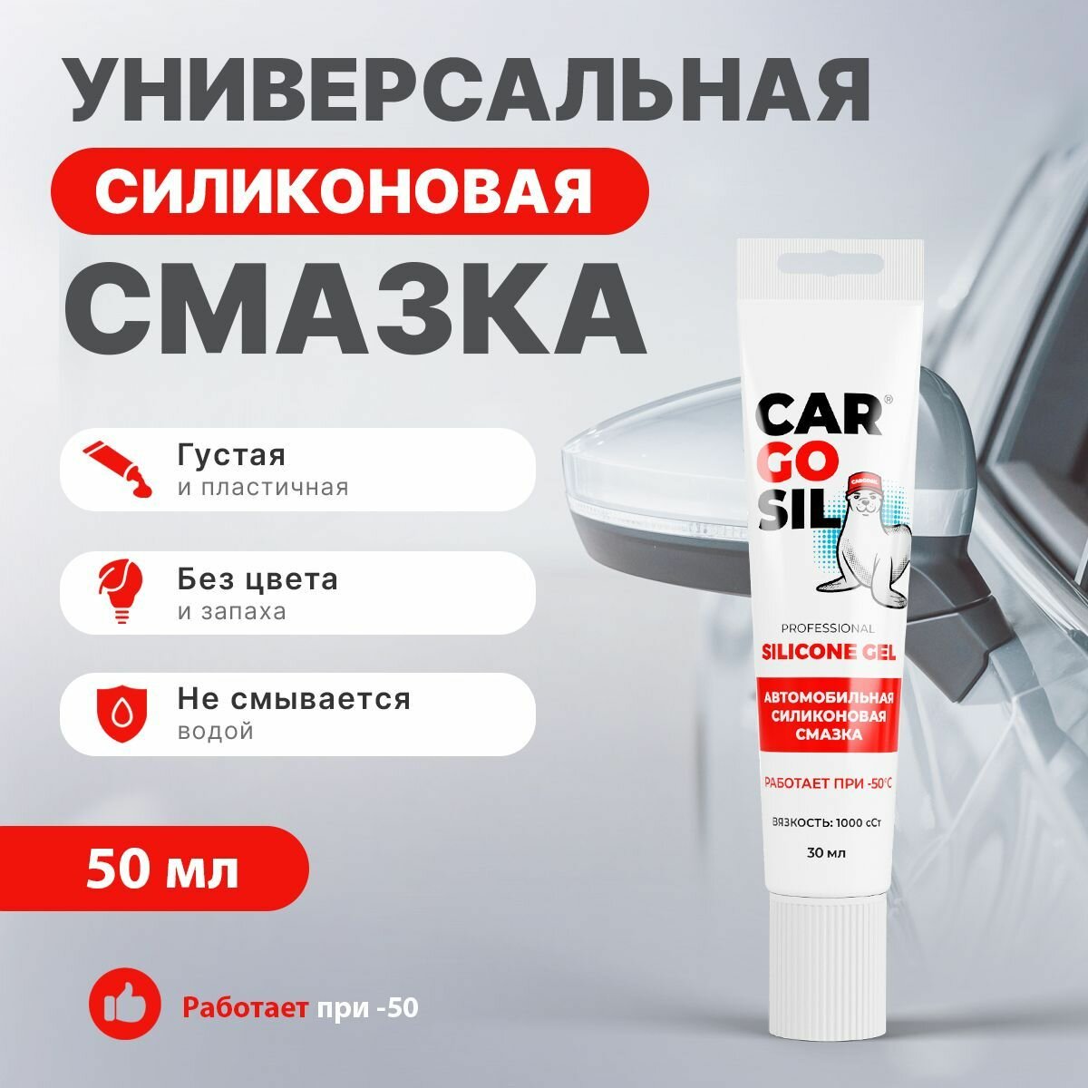 Силиконовая смазка для авто Cargosil Silicone gel, повышенной вязкости: 1000 сСт, 50мл. интересное: