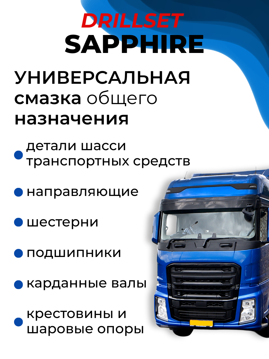 Смазка DRILLSET Sapphire EP-2, литиевая, синяя, универсальная, для направляющих, подшипников, 500 гр интересное: