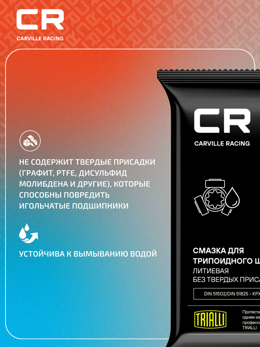 Смазка для трипоидного ШРУС, литиевая, стик-пакет, 80 г G5150205 Carville Racing интересное: