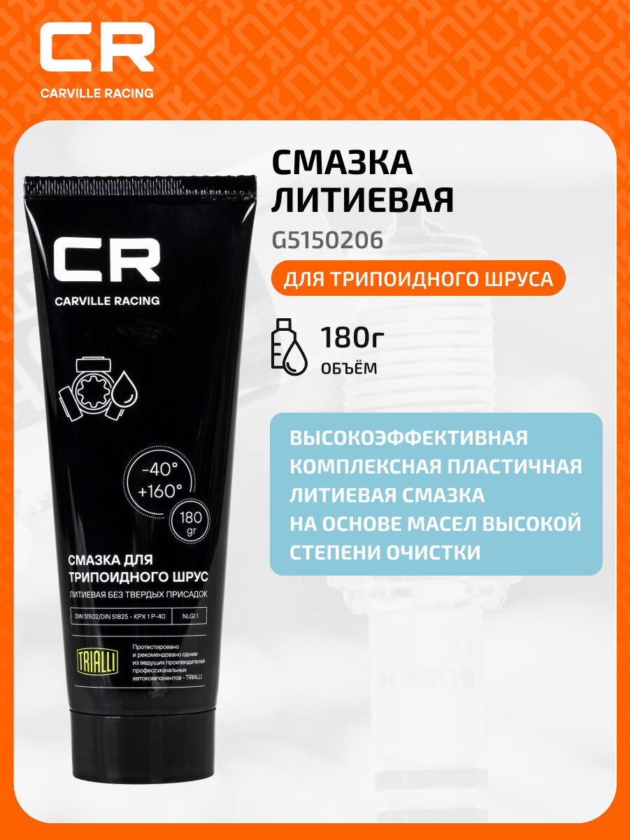Смазка для трипоидного ШРУС, литиевая, туба, 180 г G5150206 Carville Racing интересное: