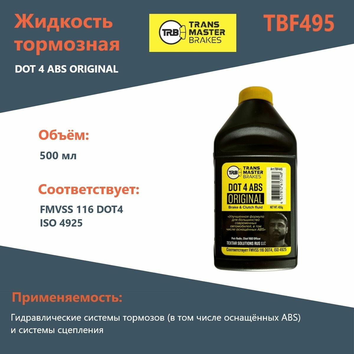 Купить Жидкость тормозная Transmaster TBF445 DOT4 ABS ORIGINAL 455г (омологирована для а/м с ABS)