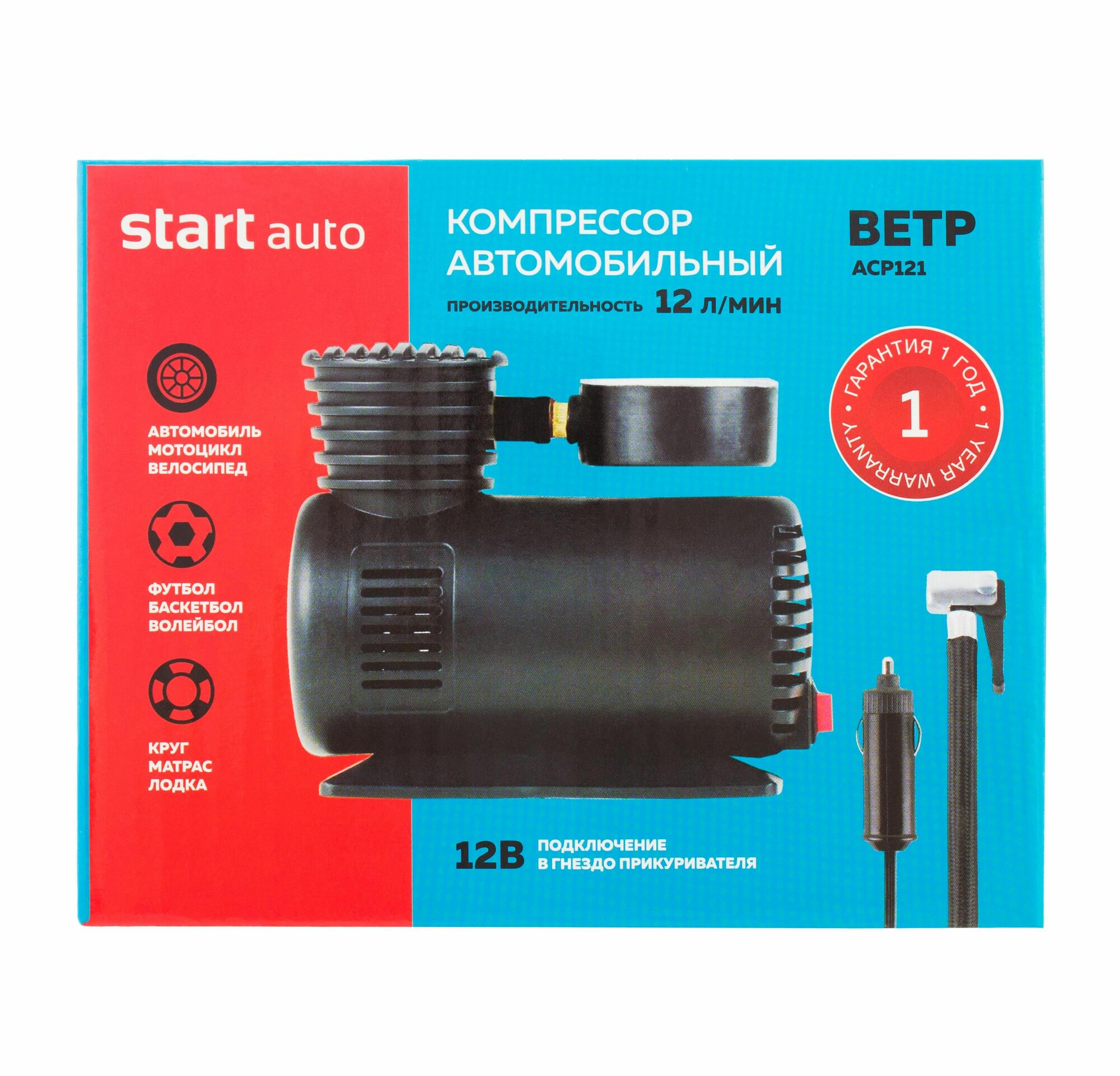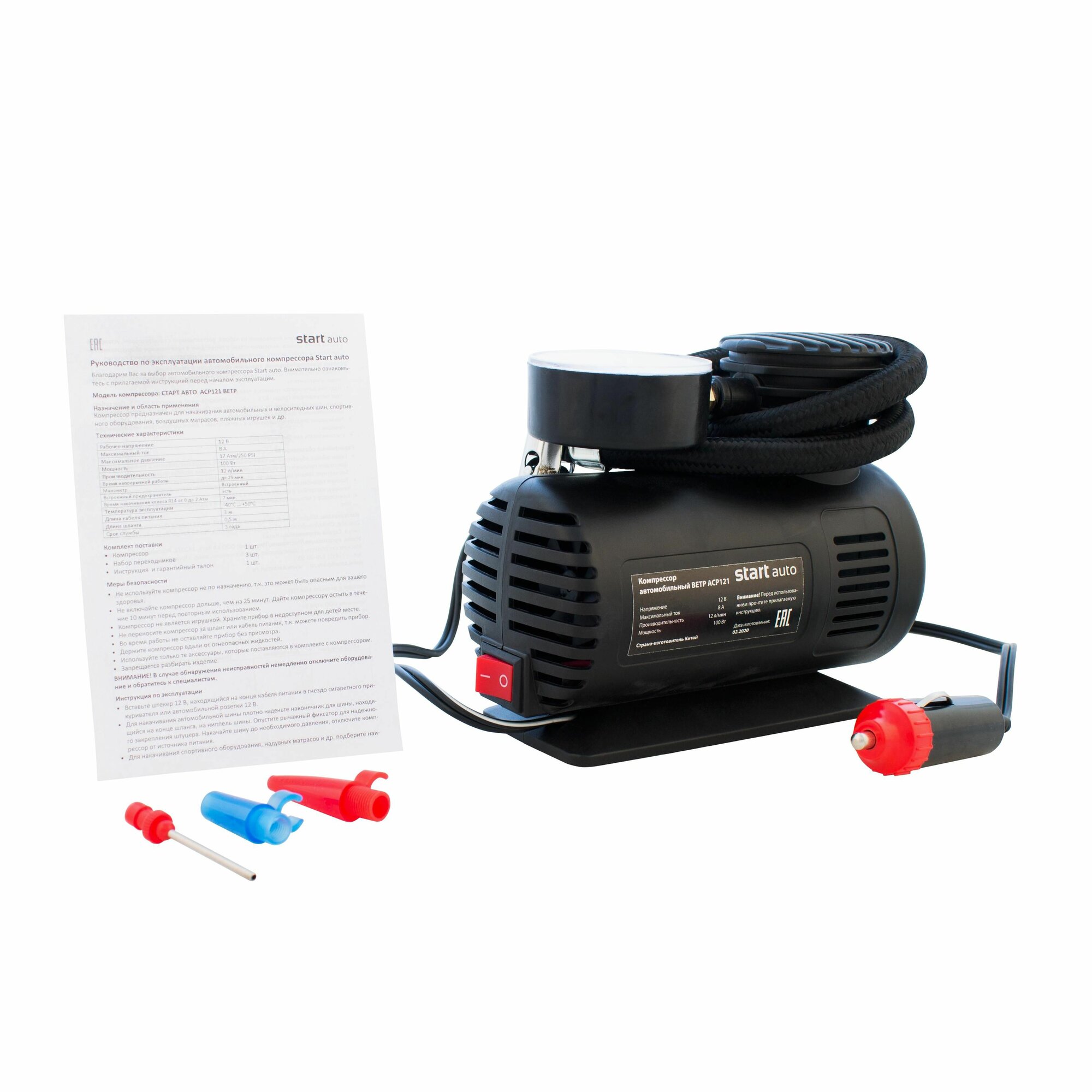 Компрессор автомобильный СТАРТ, 12л/мин, манометр, дополнительные насадки интересное: