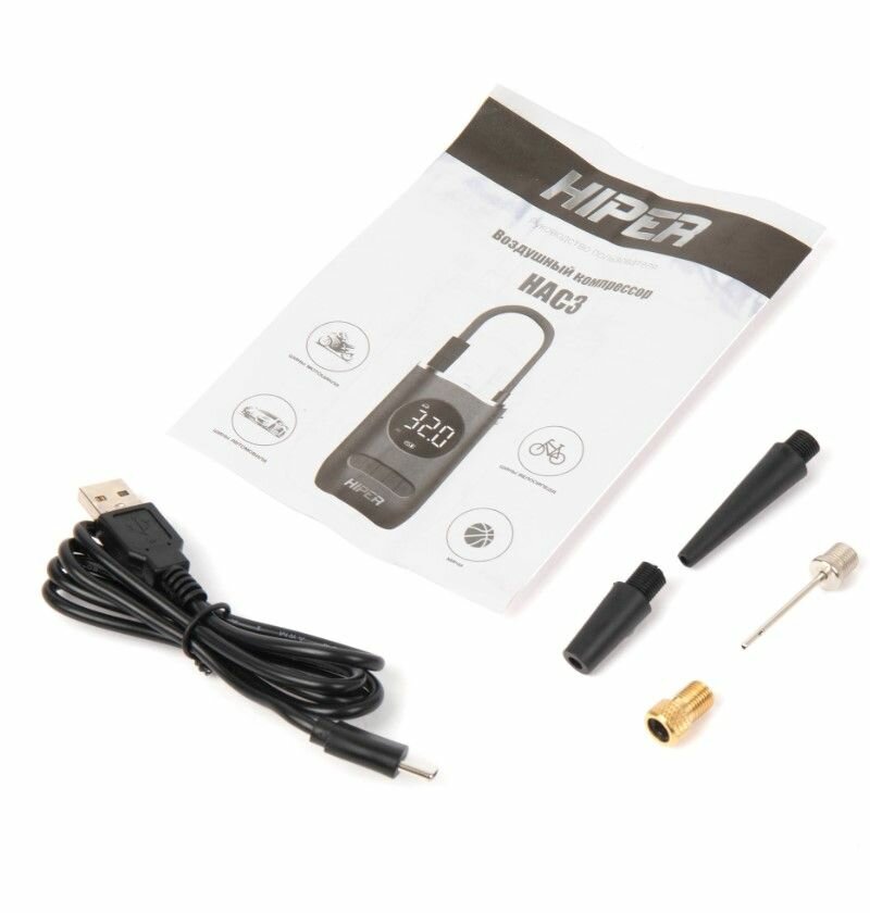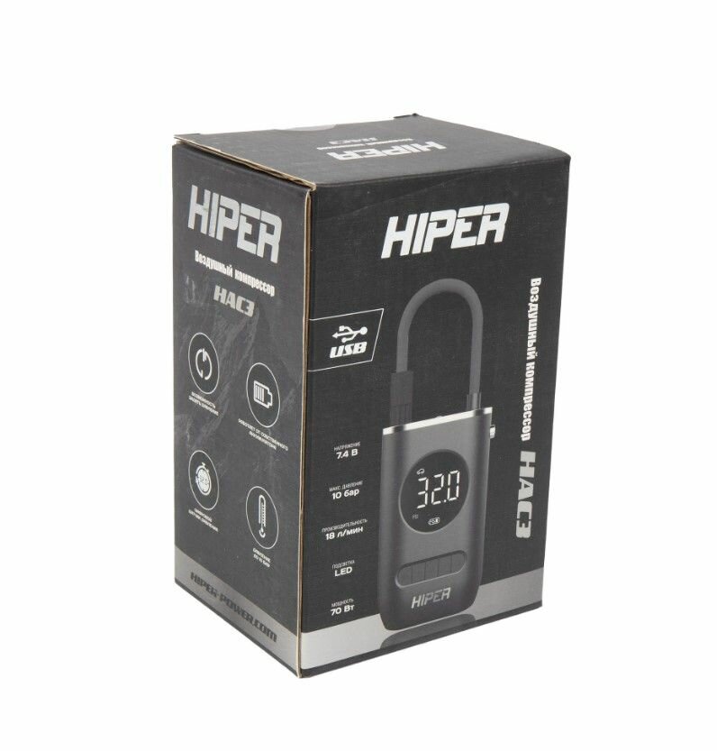 Купить Компрессор автомобильный HIPER HAC3 , 2000 мАч, 18л/мин, беспроводной.