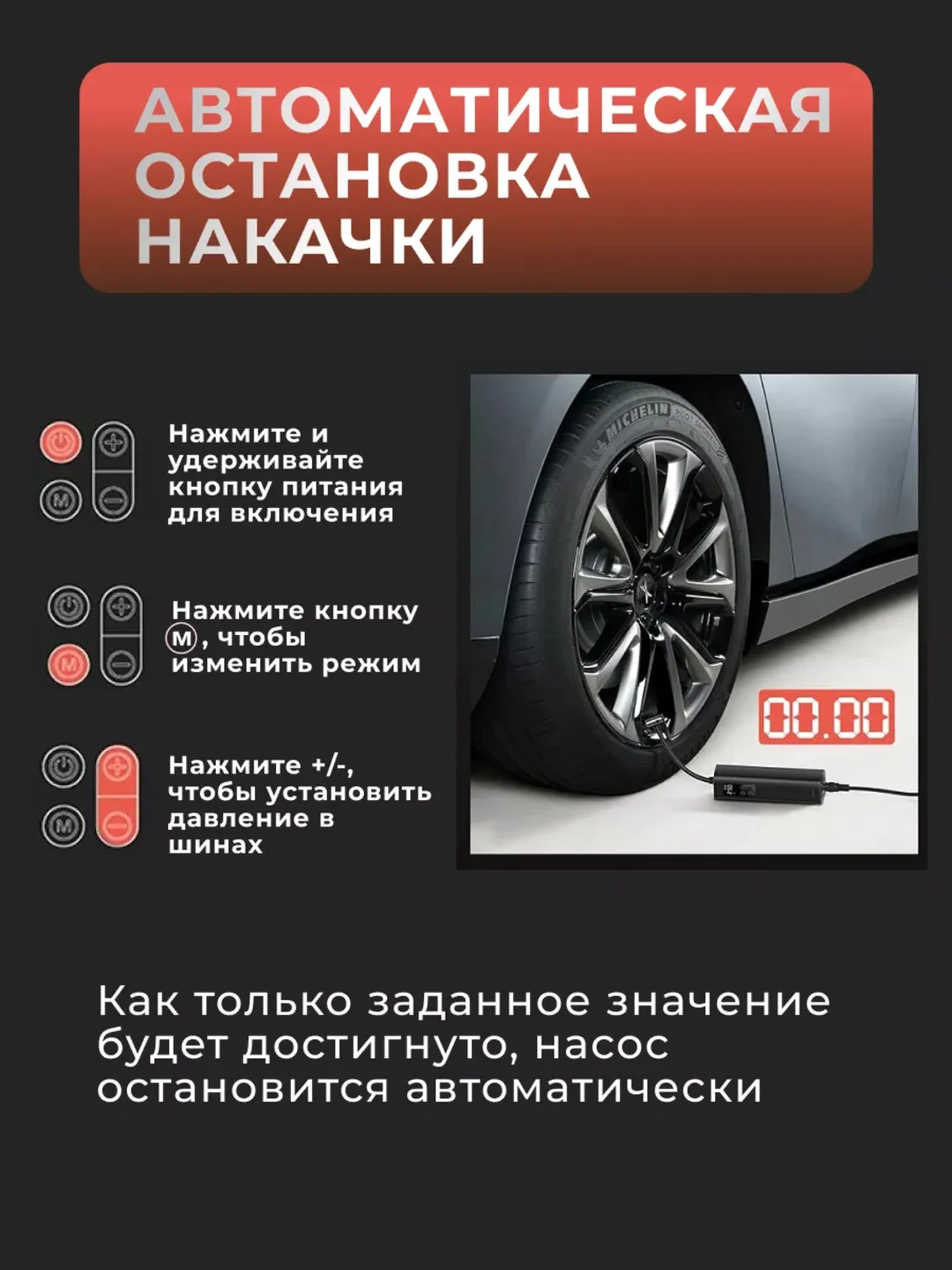 Компрессор автомобильный с электронным манометром и функцией "автостоп" модель АС630Ма