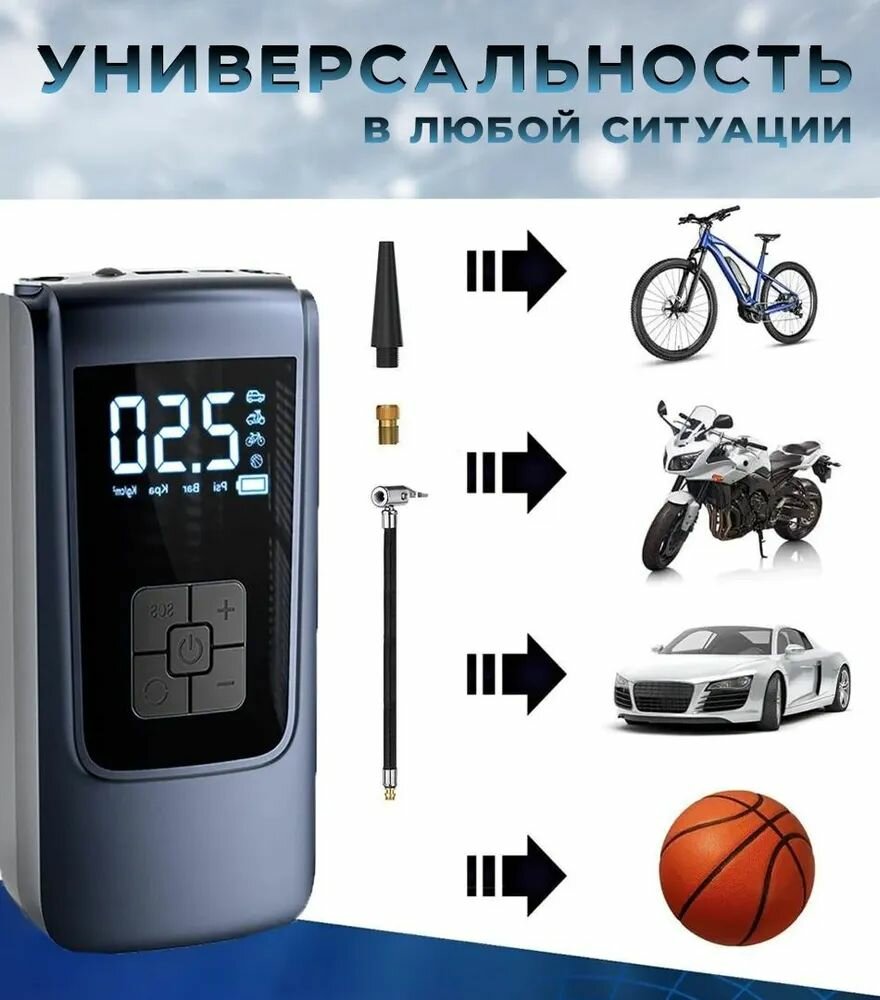 Купить Компрессор автомобильный беспроводной; мощный автоматический насос со встроенным аккумулятором(powerbank); 120 Вт; 30 л/мин