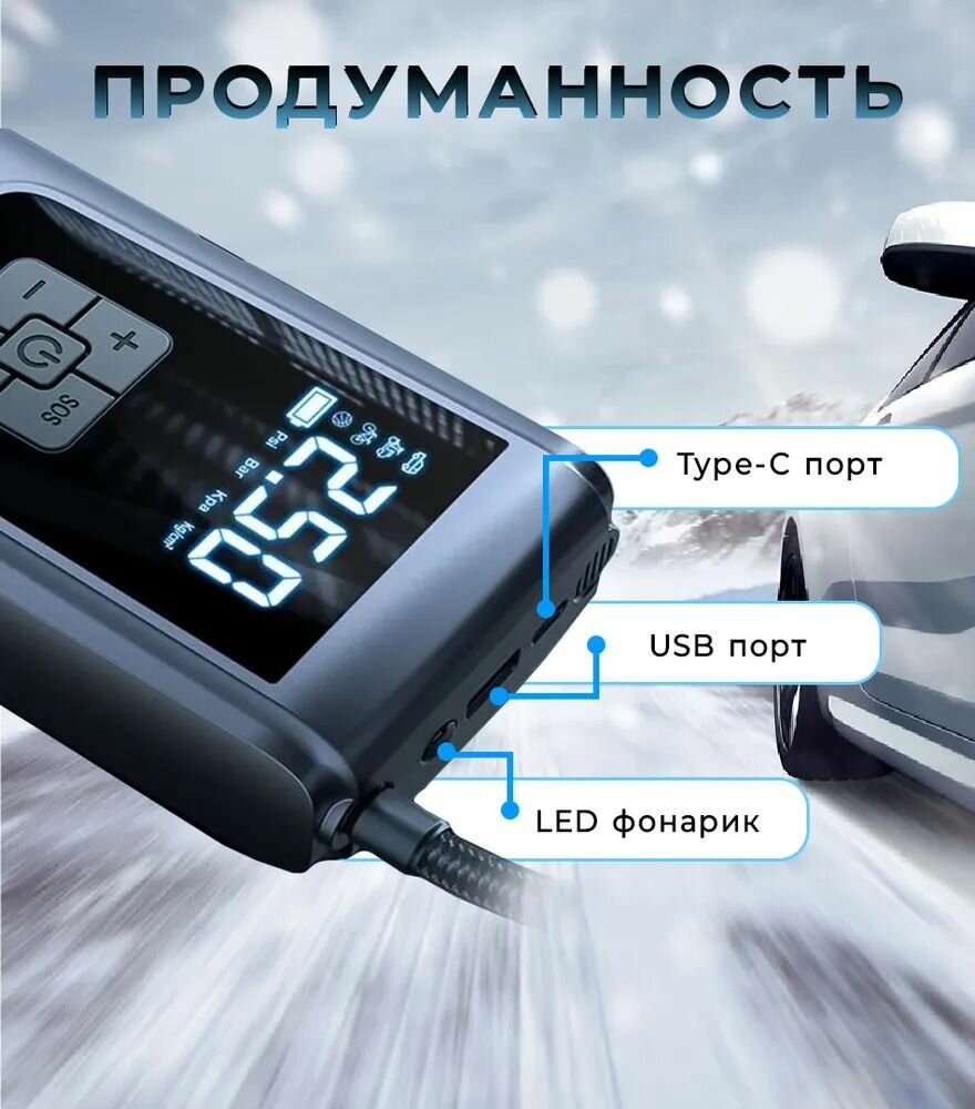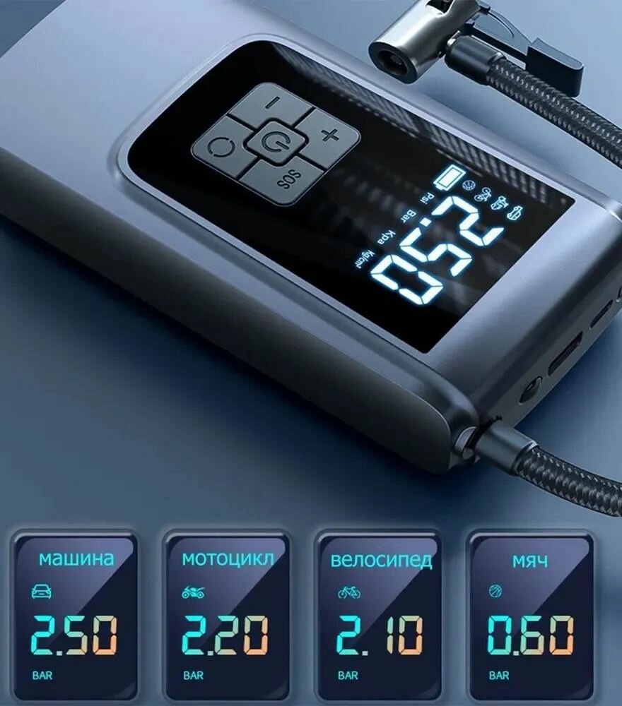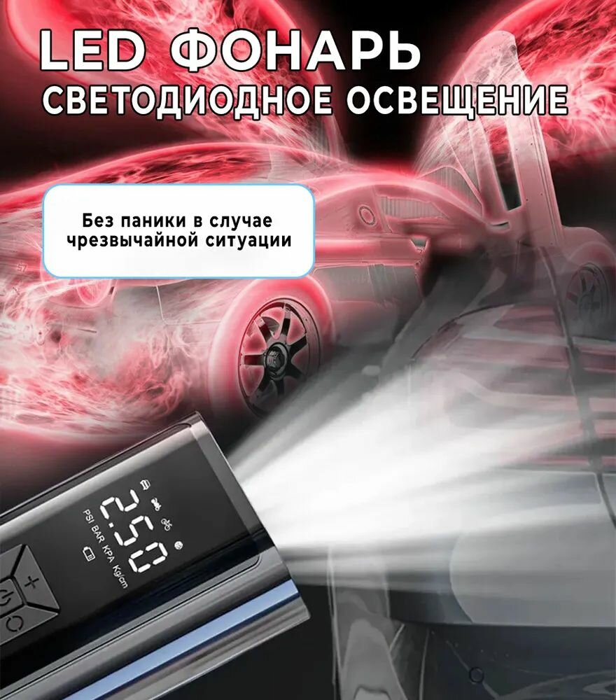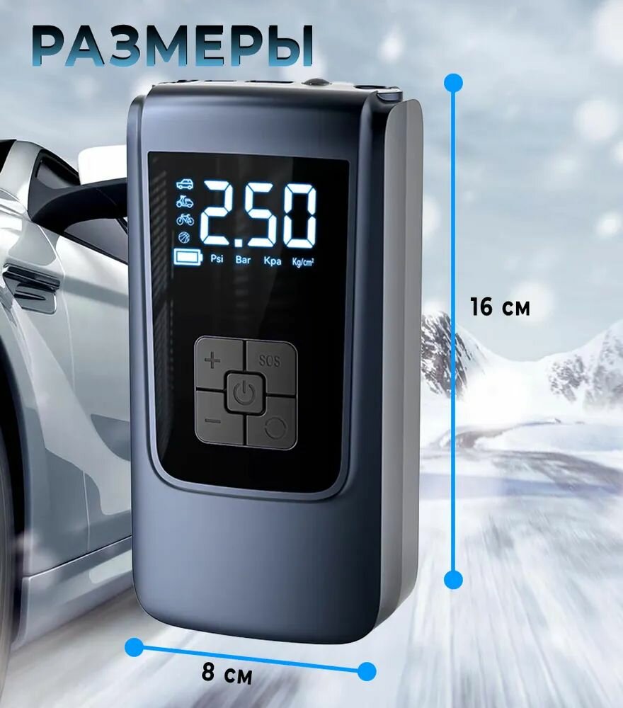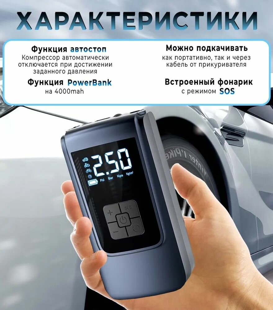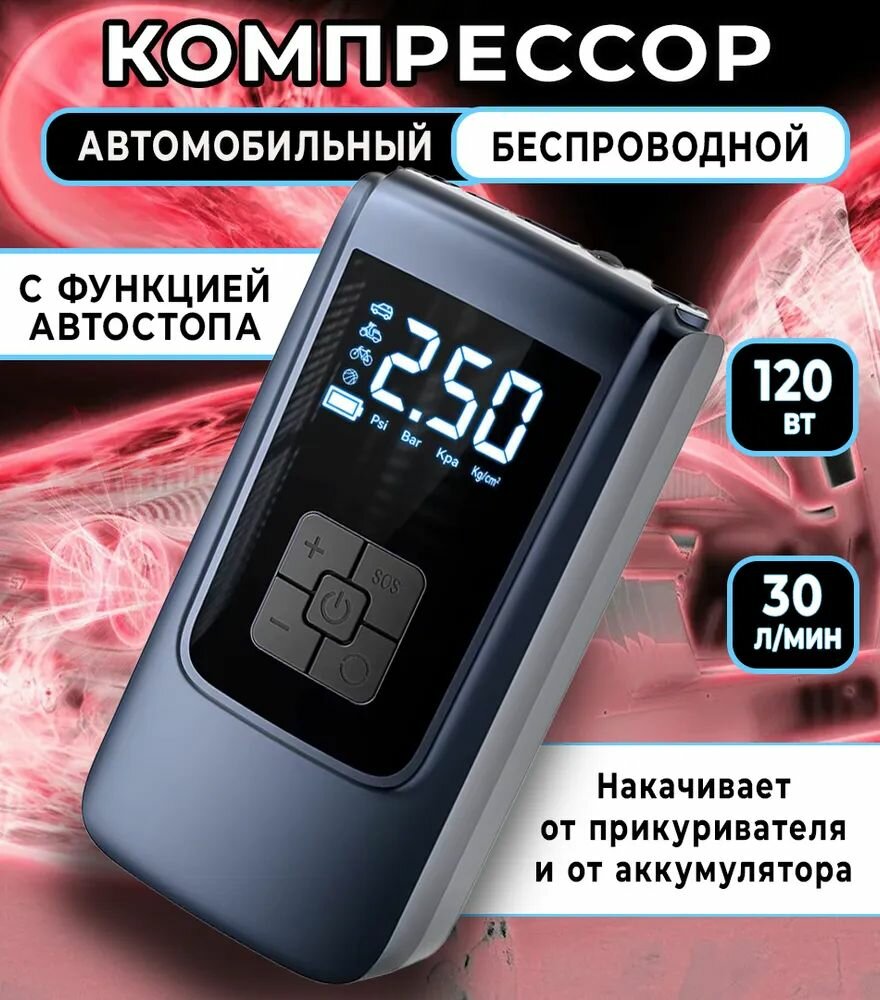 Компрессор автомобильный беспроводной; мощный автоматический насос со встроенным аккумулятором(powerbank); 120 Вт; 30 л/мин интересное: