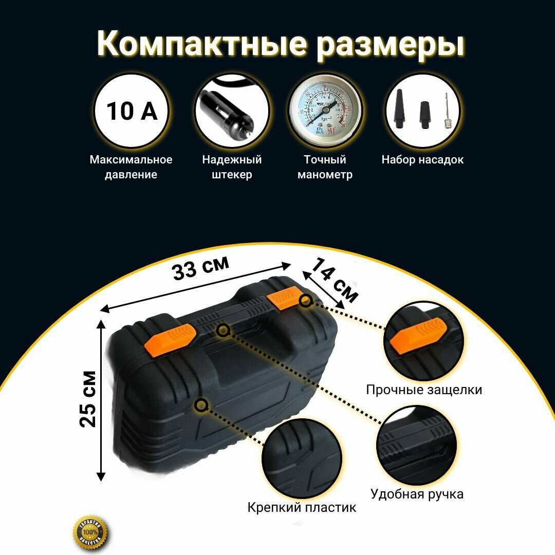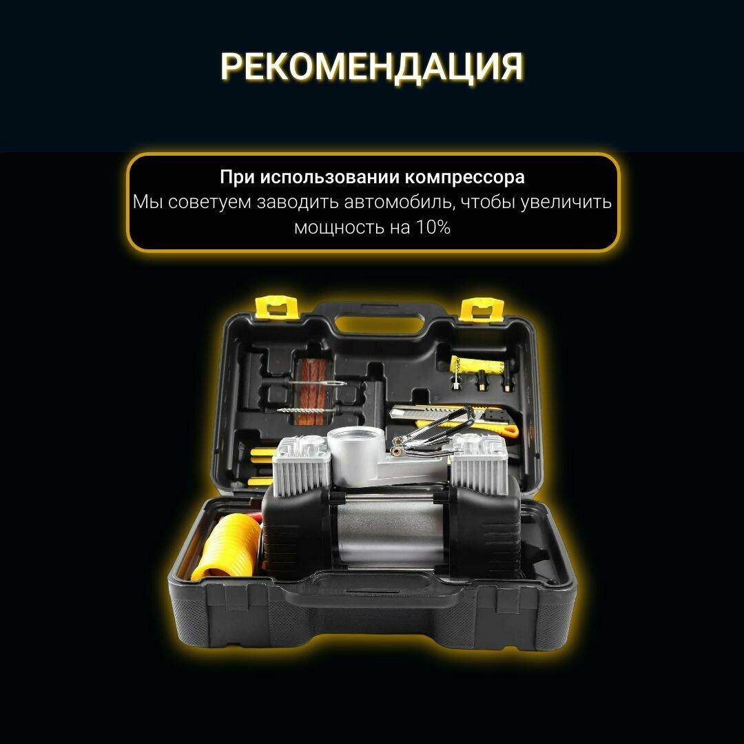 Компрессор автомобильный двухпоршневой в ударопрочном кейсе с ремкомплектом, 300 Вт, 75 л/мин, от прикуривателя интересное: