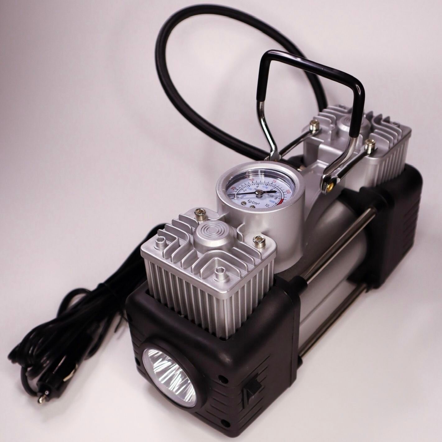 Компрессор автомобильный CityUP двухпоршневой с фонарем, 60л/мин, 300 Ватт, сумка в комплекте + переходник для АКБ