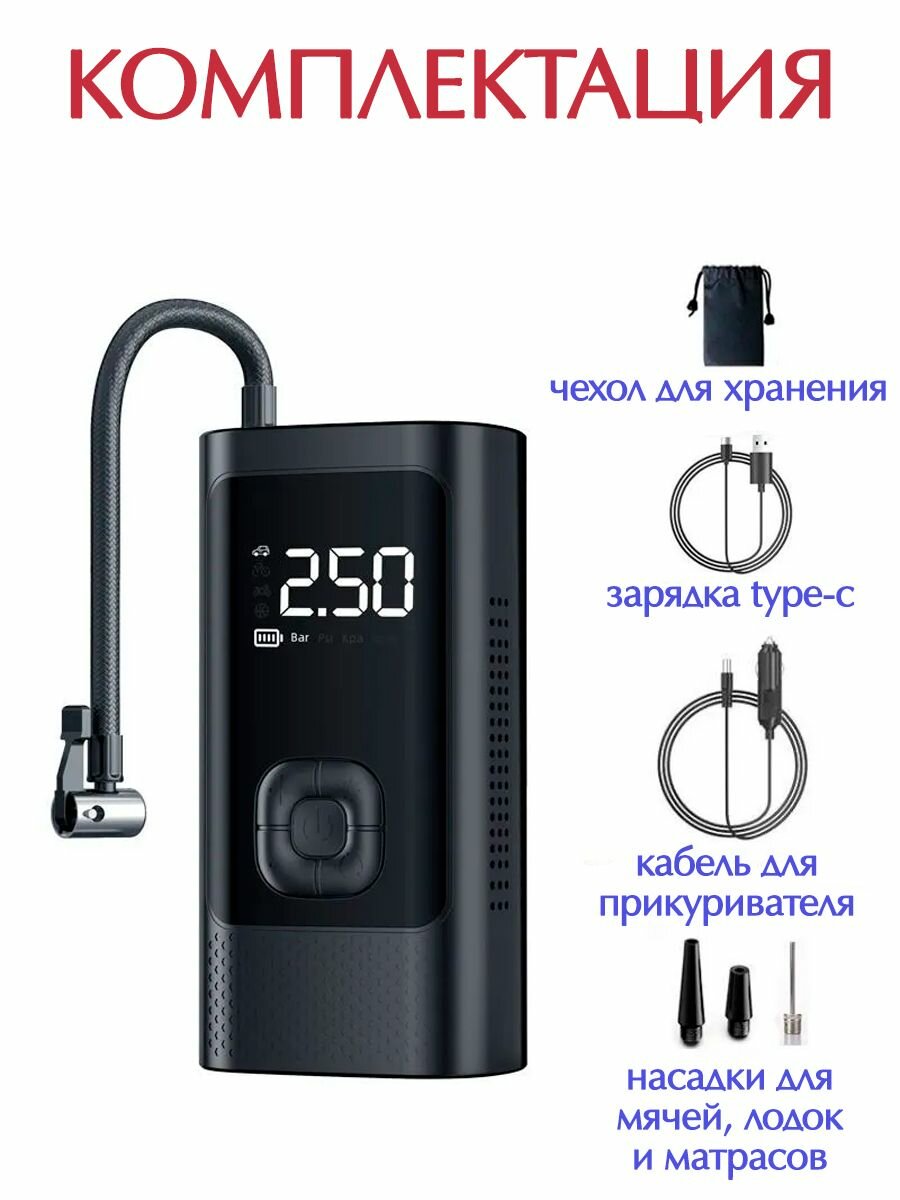 Компрессор автомобильный портативный аккумуляторный / Насос для велосипедов, мячей, лодок, матрасов интересное: